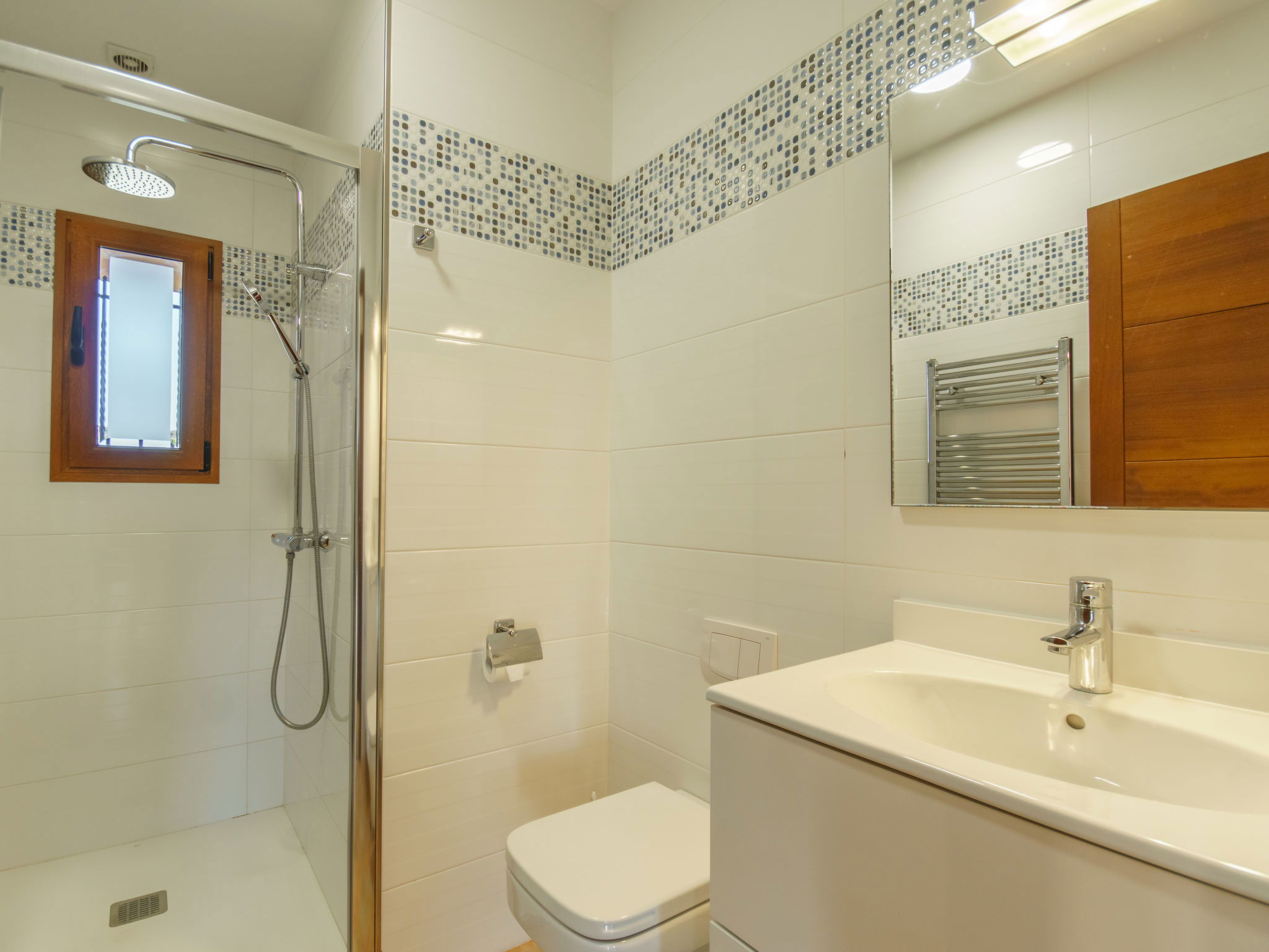 "Can Marines des cami des carro", 4-room house 125 m2 on 2 levels. Modern and tasteful furnishings: living/dining room with dining table, satellite TV, digital TV and wood-burning stove. Exit to the terrace. 1 room with 1 french bed (150 cm). Open kitchen (oven, dishwasher, 3 ceramic glass hob hotplates, microwave, freezer, electric coffee machine) with dining table. Exit to the terrace. Shower/WC. Air-conditioning. Upper floor: 1 room with 2 beds and shower/WC. 1 room with 1 french bed (180 cm), shower/WC. Exit to the terrace. Terrace roofed terrace 20 m2. Terrace furniture, barbecue, deck chairs. Beautiful view of the sea. Facilities: washing machine, iron, children's high chair, baby cot, hair dryer. Internet (WiFi, free). Please note: non-smoking house. Fire extinguisher. ETV7455 // Reg. Nr.: ESFCTU00000700800013966200000000000000000000ETV/74555