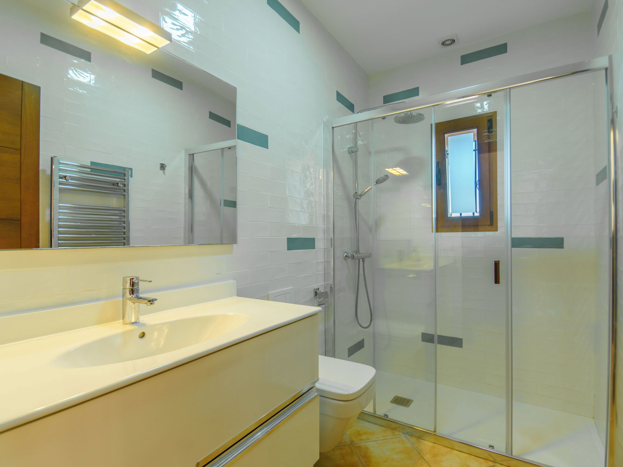 S'Horta 5 km from Cala d'Or: Beautiful farm estate "Can Marines des cami des carro", detached, surrounded by meadows and fields. Below S'Horta 1 km from the centre of S'Horta, 5 km from the centre of Cala d'Or, 15 km from the centre of Felanitx, 3 km from the sea. Private: natural state property 6'500 m2, garden 300 m2 (fenced), swimming pool (6 x 3 m, depth 90 - 150 cm, seasonal availability: 01.Jan. - 31.Dec.) with salt-electrolysis pool-cleaning system. Outdoor shower, terrace, garden furniture. In the house: central heating system. Parking on the premises. Shop 1 km, restaurant 1 km, bar 1 km, bus stop 4 km, sandy beach "Cala Sanau" 3 km. Golf course (18 hole) 4.5 km. Please note: car recommended. On the estate animal husbandry. Owner lives in separate semi-detached house.