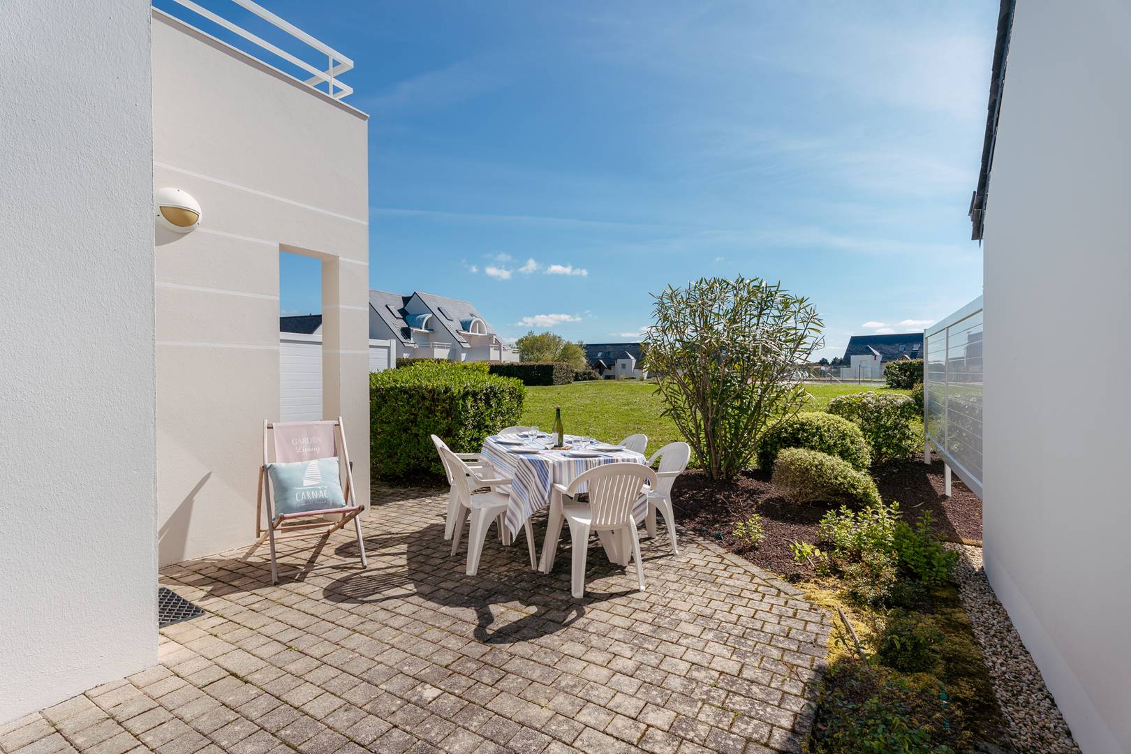 At 1km from the beach of Légenèse, Thalassotherapy and the village of Carnac, 3-room apartment (approx. 57m²) for 6 people, located in a quiet residential complex with heated communal pool open from mid-June to mid-September, Residence LE DOMAINE DES TADORNES (Building H, ground floor, door 81):