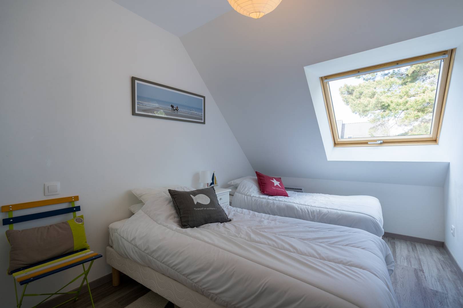 - 1 bedroom with 2 single beds (90, duvets) cupboard