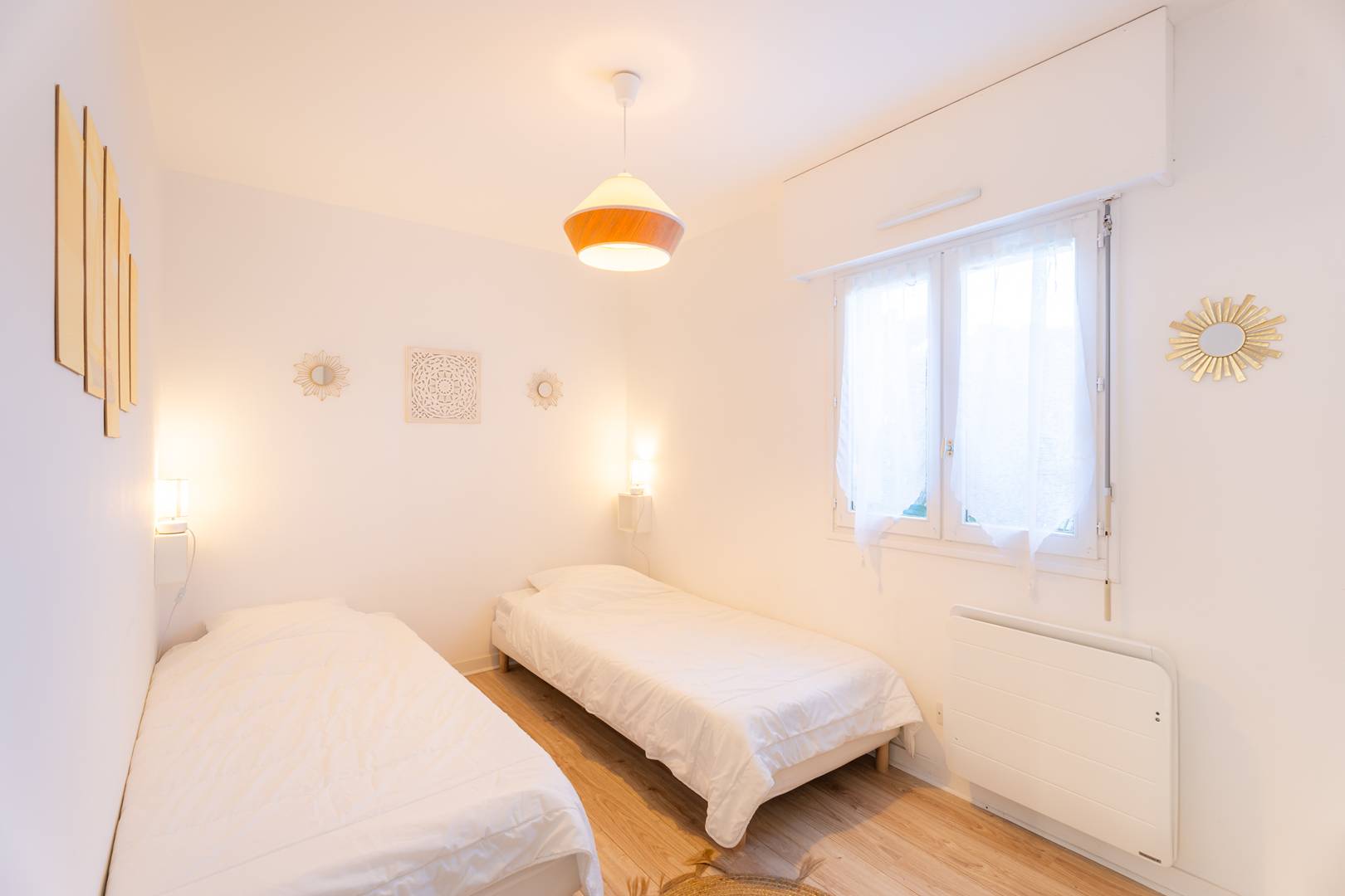 - 1 bedroom with 2 single beds (90 cm, duvets)