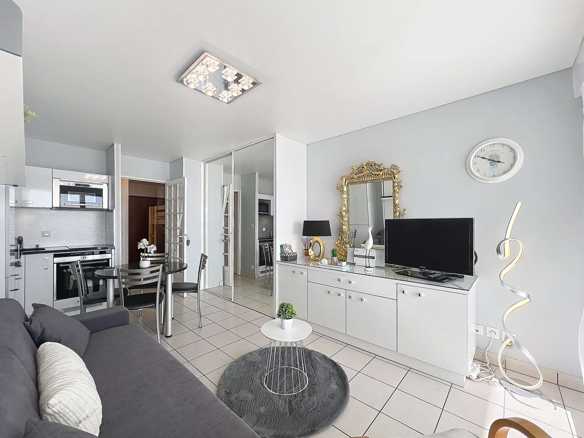 - Living room with TV, dressing and folding bed of 160cm large,