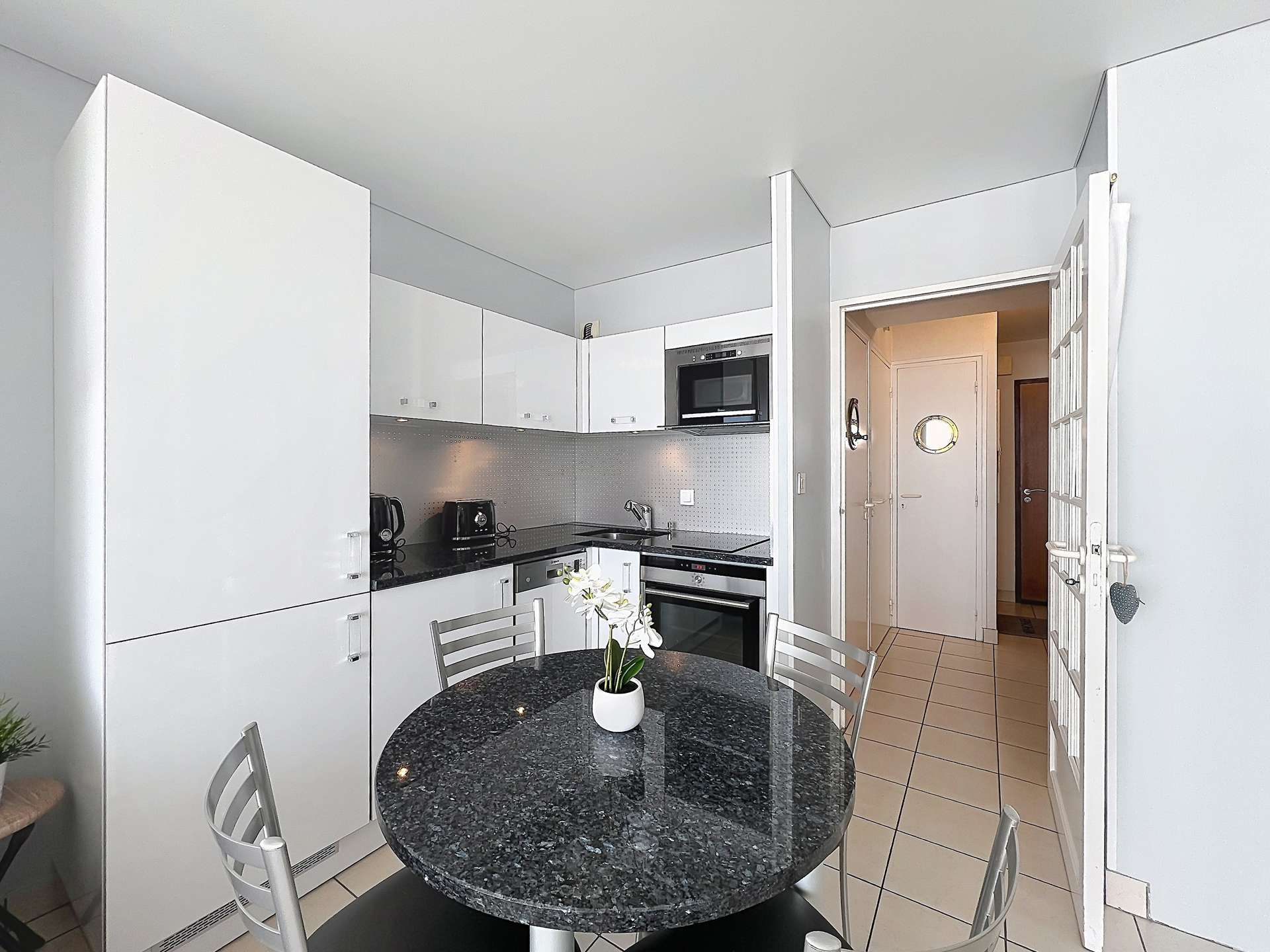 - Equipped kitchen (fridge, freezer, cooking plate, oven, dishwasher, microwave, washing machine),