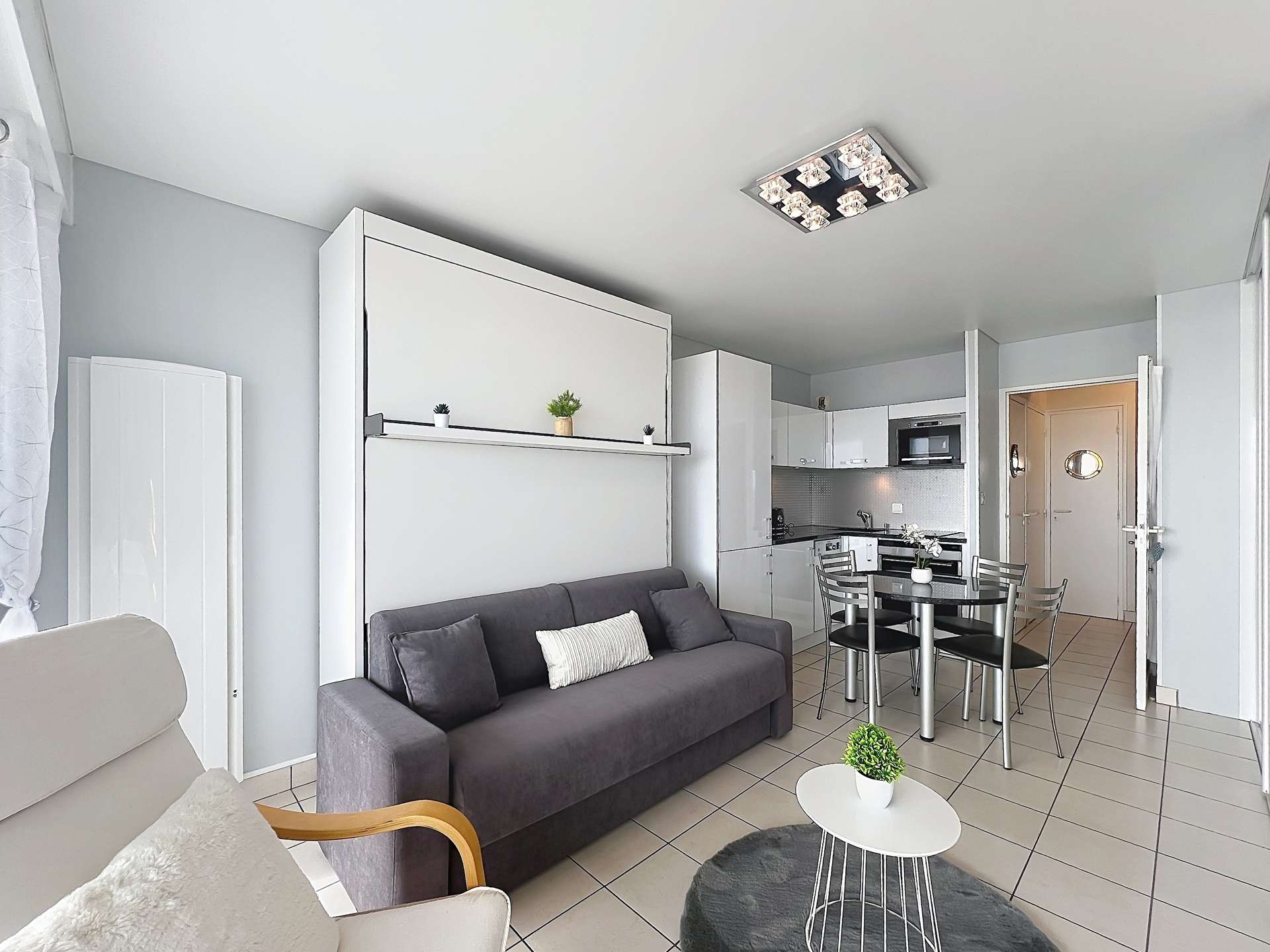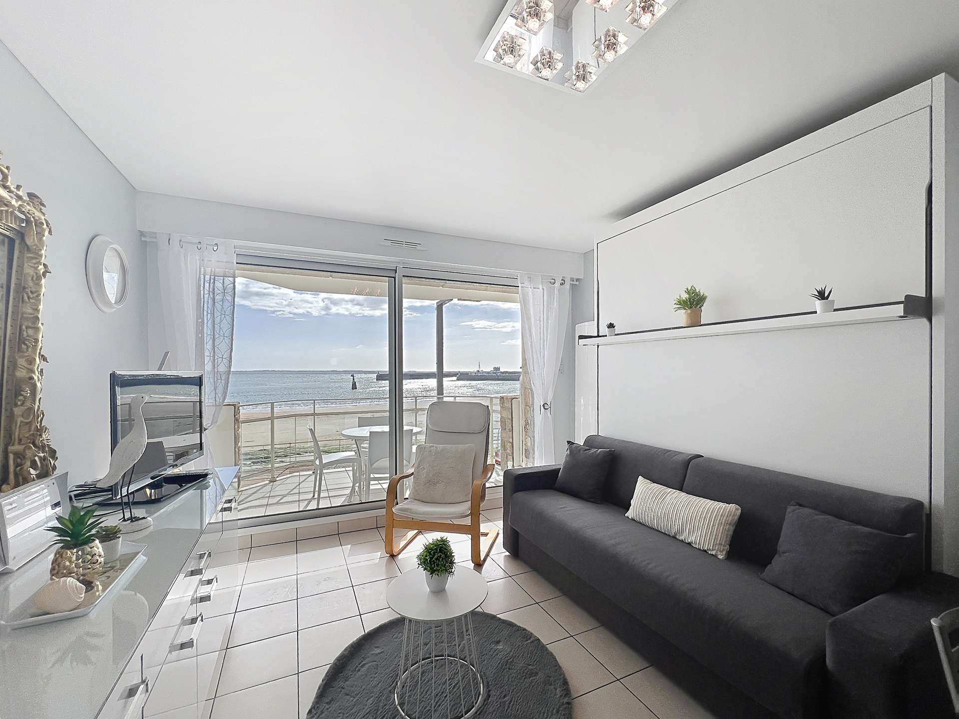 Studio for 3 persons, completely renovated, on the floor, door n°2 in the residence "Nausicaa". It offers a direct view of the beach, and near to the town center.