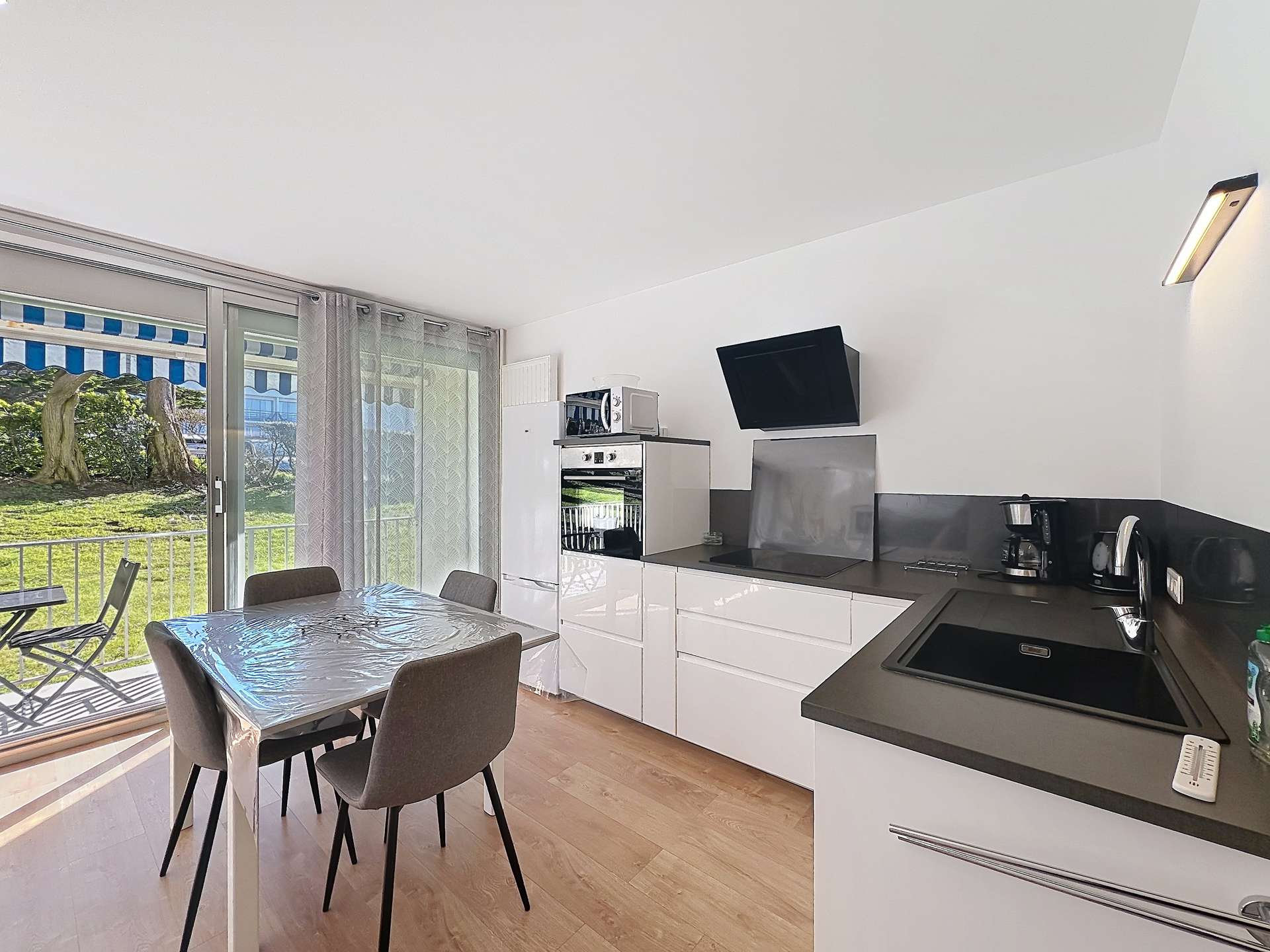 Pleasant 2 rooms appartment completely renovated for 3 persons of 37m² located on the ground floor, door n°15 of the Residence « Le Goulvars ». You will be located a few steps from Goviro beach and the thalassotherapy center.