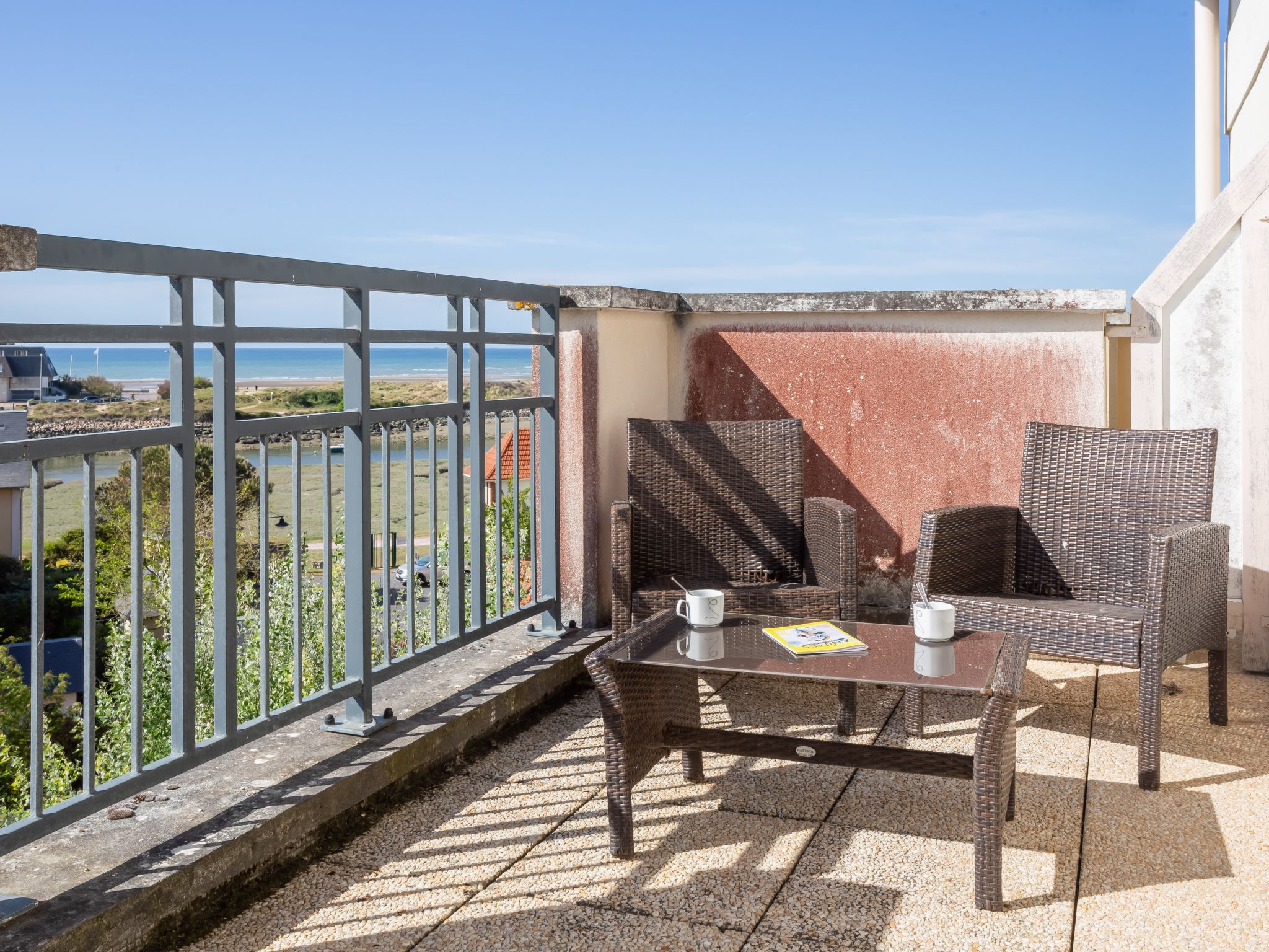 3-room apartment 42 m2 on 2 levels on 2nd floor, north-west facing position. Living/dining room with 1 pull-out bed (2 pers. 2 x 90 cm, length 190 cm), TV (flat screen). Exit to the balcony. Kitchenette (2 hot plates, dishwasher, toaster, microwave, electric coffee machine) with bar. Sep. WC. Electric heating. Upper floor: 1 room with 1 french bed (1 x 140 cm, length 190 cm). 1 room with 2 beds (90 cm, length 190 cm). Exit to the balcony. Bathroom, sep. WC. Balcony 3 m2, terrace 10 m2. Terrace furniture. Distant view of the sea and the river. Facilities: iron. Internet (WiFi, extra). Parking space n 02 (roofed). Please note: maximum 1 pet/ dog allowed. Smoke alarm.