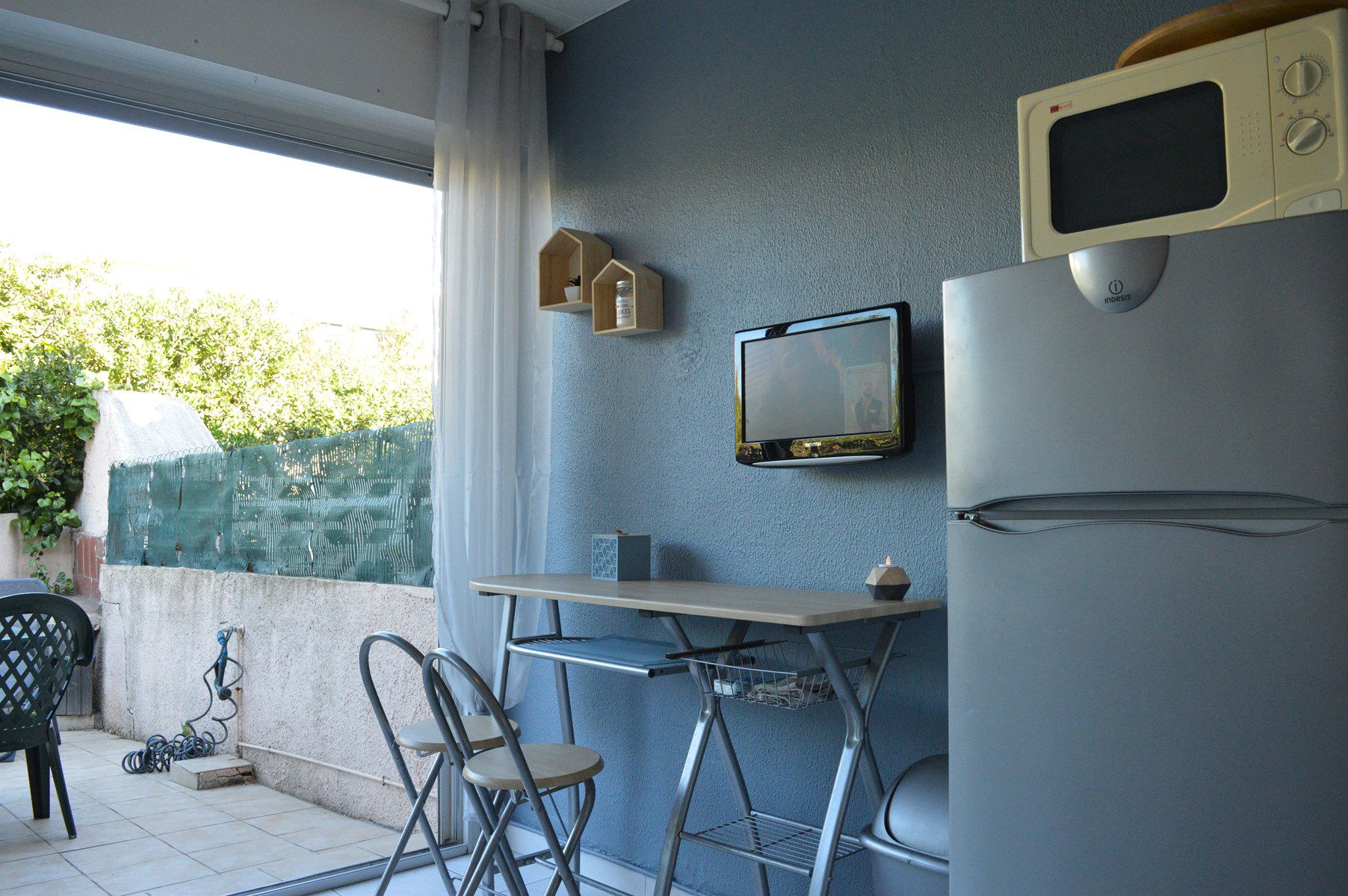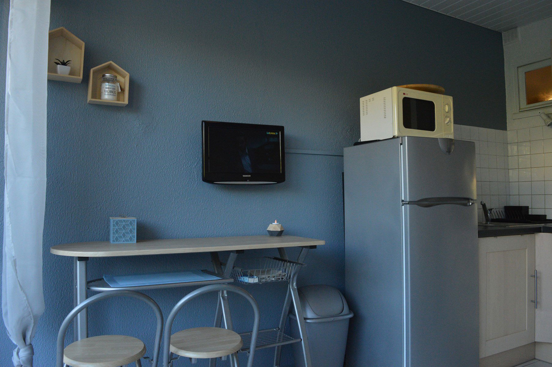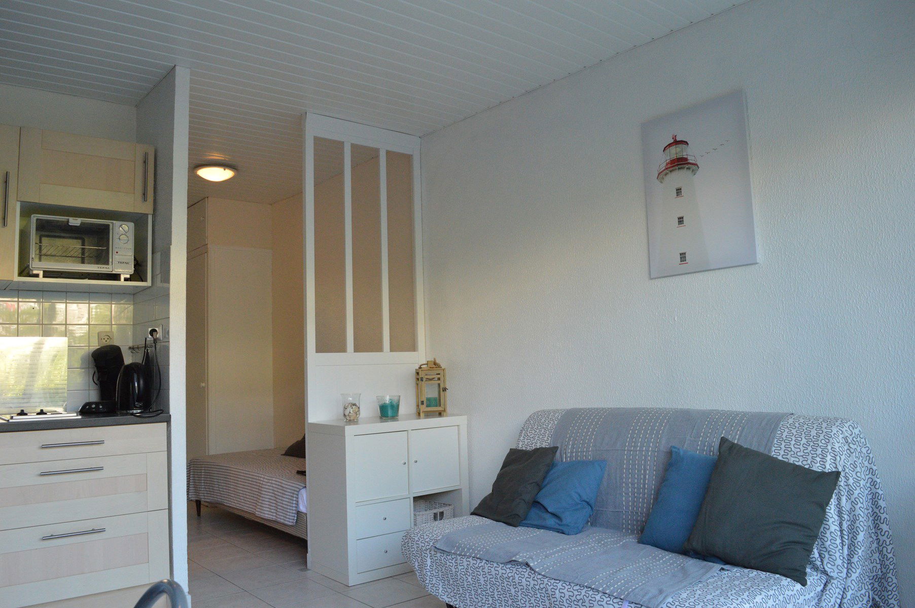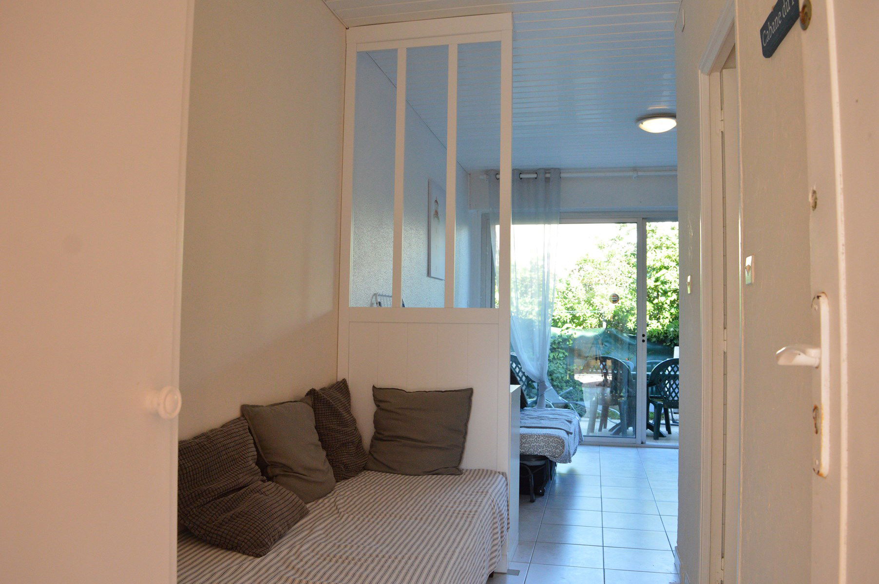 The Apartment Studio / Cabin - approximately 20 m² - up to 3 people Located only 50m from the beach, the residence is only 300m of the businesses. You can enjoy a pretty sunny terrace with a barbecue area. A parking space within the residence is at your disposal. This apartment is located on the ground floor of the residence, it consists of a living room with a sofa bed, a cabin area with a single bed, a bathroom and a toilet. The plus of this rental: parking, terrace, immediate proximity to the beach. Cleaning with disinfection included.