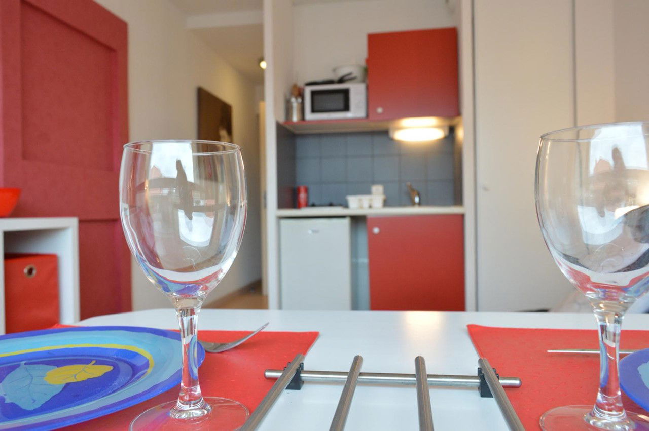 Center Port area - Résidence Hôtelière Le Saint-Clair Studio apartment - approx. 20 m² - up to 2 people. Located 800 m from the beach, the plus residence is made up of a hotel complex (rooms, suites, studios and apartments). This holiday apartment, located on the 3rd floor with lift, includes a living room with a 2-seater sofa bed and television, a fitted kitchen area, a shower room with WC. Public car park at 100 m (paying from May to September). Pets are allowed. The plus of this rental by the sea: Swimming pool, gym. Located in the heart of the resort and the port center. Please note: swimming pool opening subject to changes linked to the COVID-19 situation Cleaning with disinfection included.