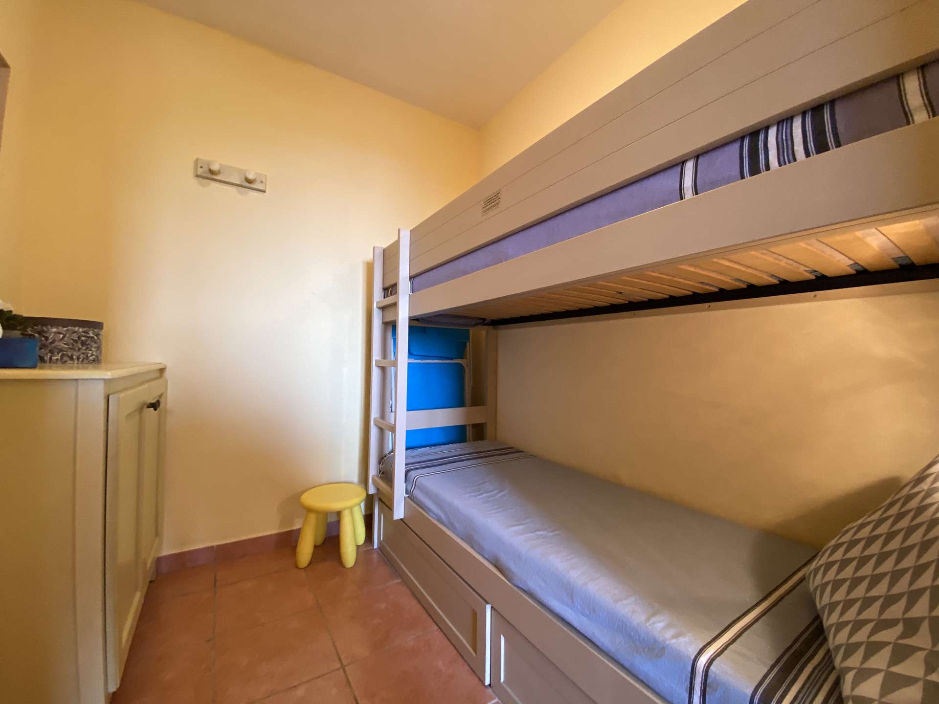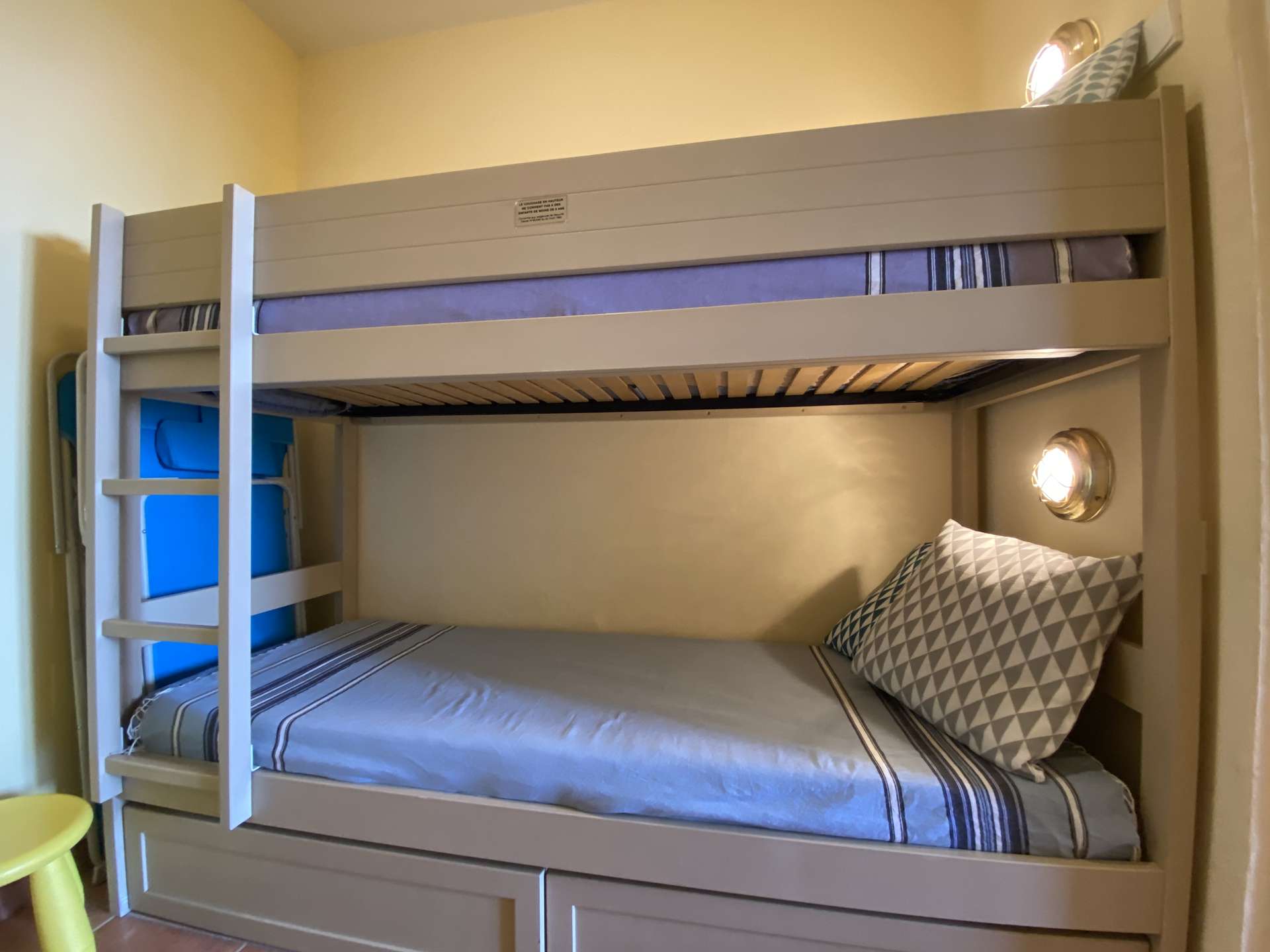 This is an ideal vacation rental for a family trip! This accommodation is located in a holiday residence and offers calm and leisure. It consists of a living room with a sofa bed for two people, an equipped kitchen area, a sleeping area with two single bunk beds, a bedroom with a double bed, a bathroom, a separate toilet.