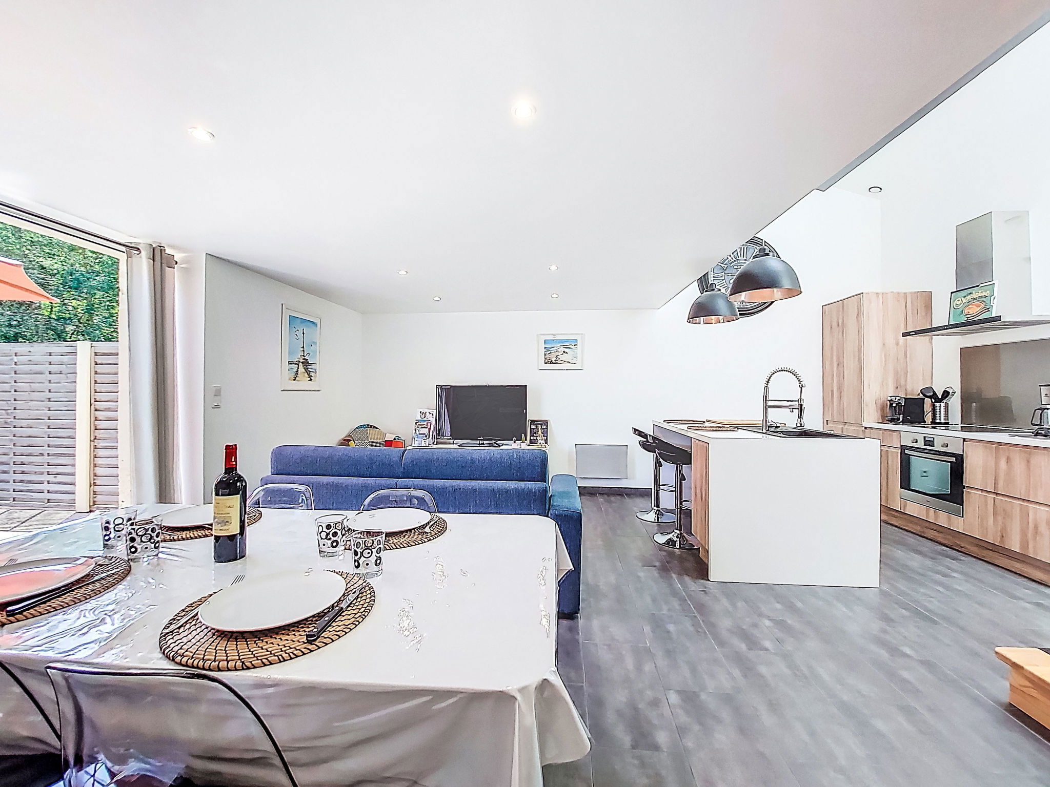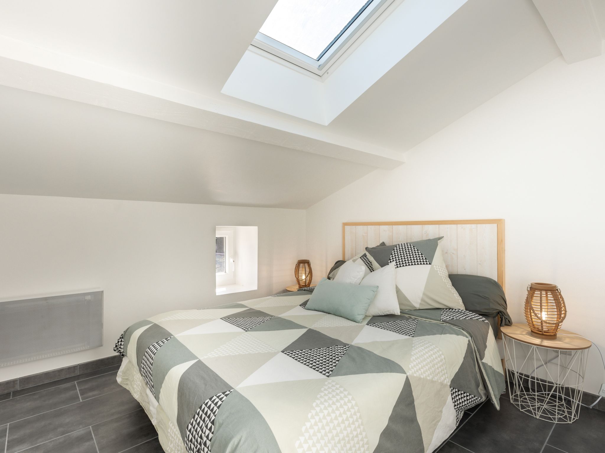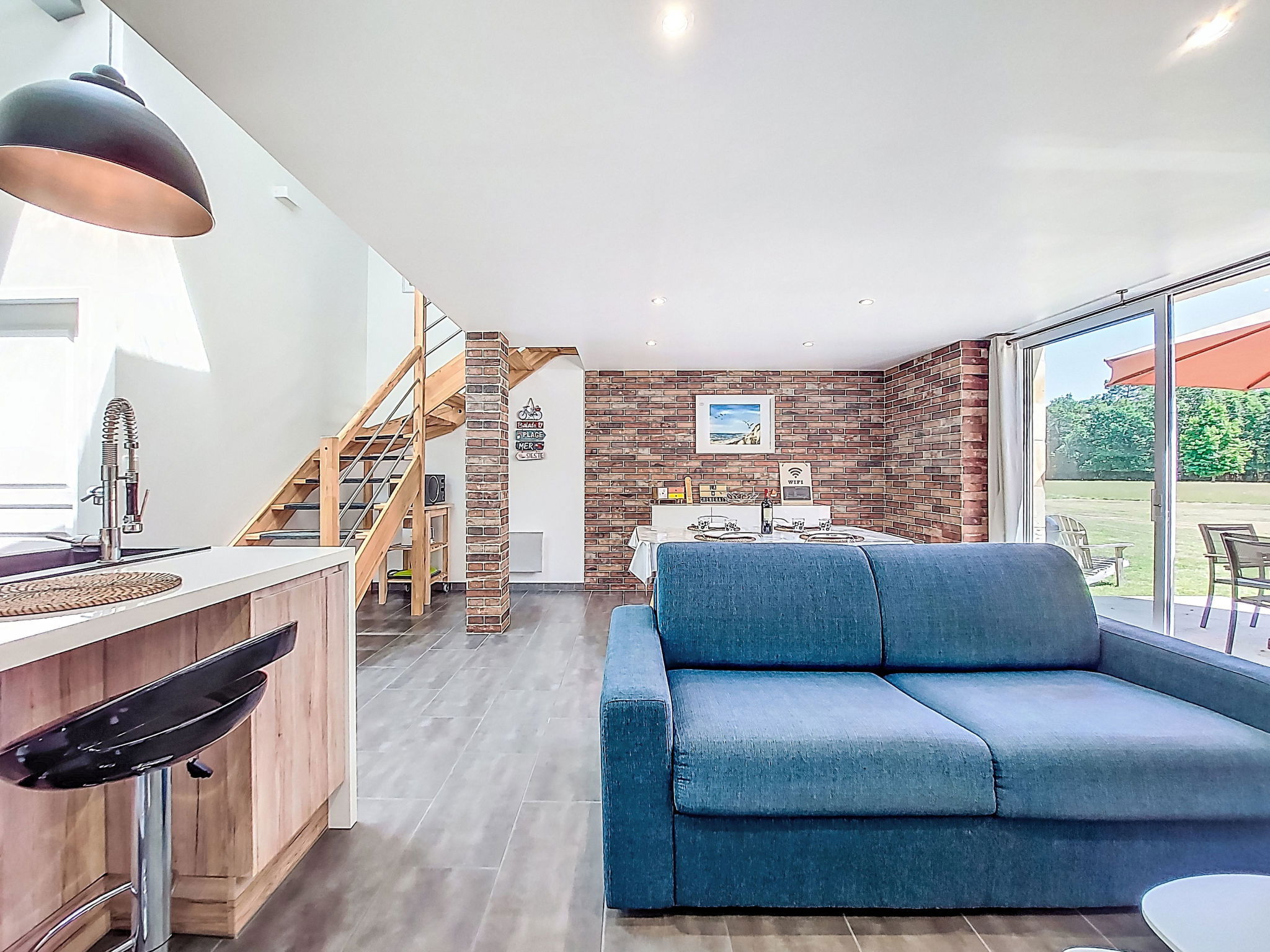 "La Cheneraie", 3-room semi-detached house 65 m2. Renovated in 2020, modern and tasteful furnishings: living/sleeping room with 1 double sofabed (140 cm), TV (flat screen), CD-player and DVD. Exit to the terrace. 1 room with 1 french bed (140 cm, length 190 cm). Open kitchen (oven, dishwasher, 4 gas rings, toaster, kettle, microwave, freezer, electric coffee machine) with dining table. Exit to the terrace. Shower/WC, double hand-basin. Upper floor: 1 room with sloping ceilings with 1 french bed (140 cm, length 190 cm). Electric heating. Large terrace 20 m2. Terrace furniture, barbecue (portable), deck chairs (2), box-room. Beautiful view of the forest. Facilities: washing machine, iron, children's high chair, baby cot. Internet (WiFi, free). Please note: non-smoking house. Smoke alarm. Offer by a private individual according to Art. 155, IV of CGI.