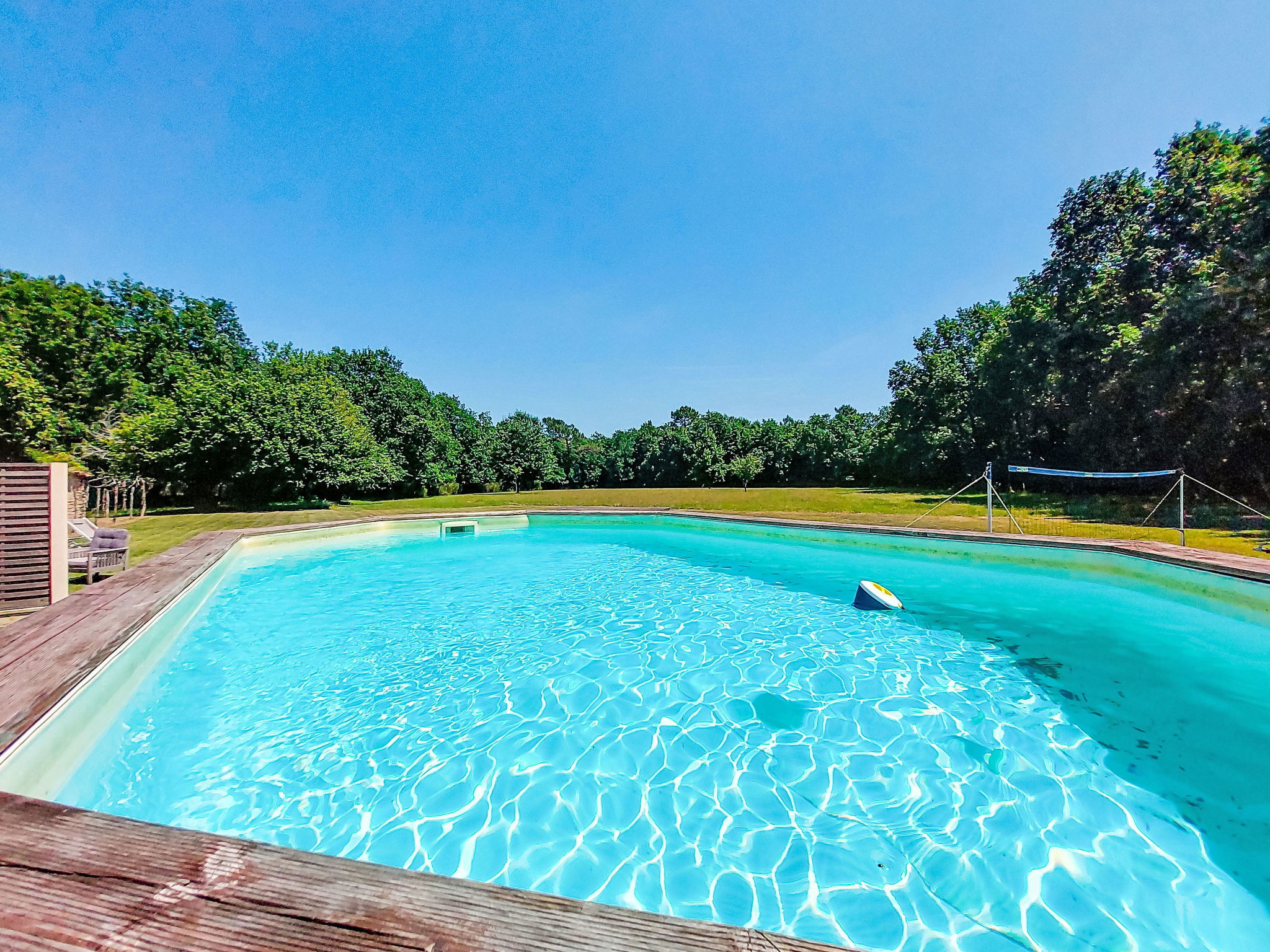 Beautiful country house "La Cheneraie", 2 storeys, semi-detached, from the 19th century, surrounded by trees and meadows. 10 km from the centre of Hourtin, 12 km from the centre of Lesparre, 61 km from the centre of Bordeaux, in a secluded position, 16 km from the sea, 15 km from the lake. For shared use: natural state property 15'000 m2 with trees, meadow, swimming pool (above ground) secured (5 m diameter, depth 120 cm, seasonal availability: 01.May. - 30.Sep.). Parking (for 2 cars) at the house on the premises. Shop 10 km, supermarket 10 km, bus stop "Lesparre-Medoc" 10 km, sandy beach "Pin Sec, Naujac" 16 km, bathing lake "Hourtin-Port" 15 km. Marina 15 km, golf course (18 hole) 40 km. Please note: car recommended. Owner lives in separate semi-detached house. The owner has a dog.