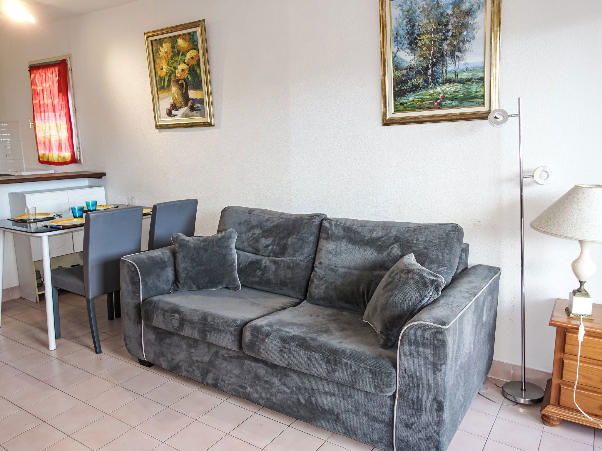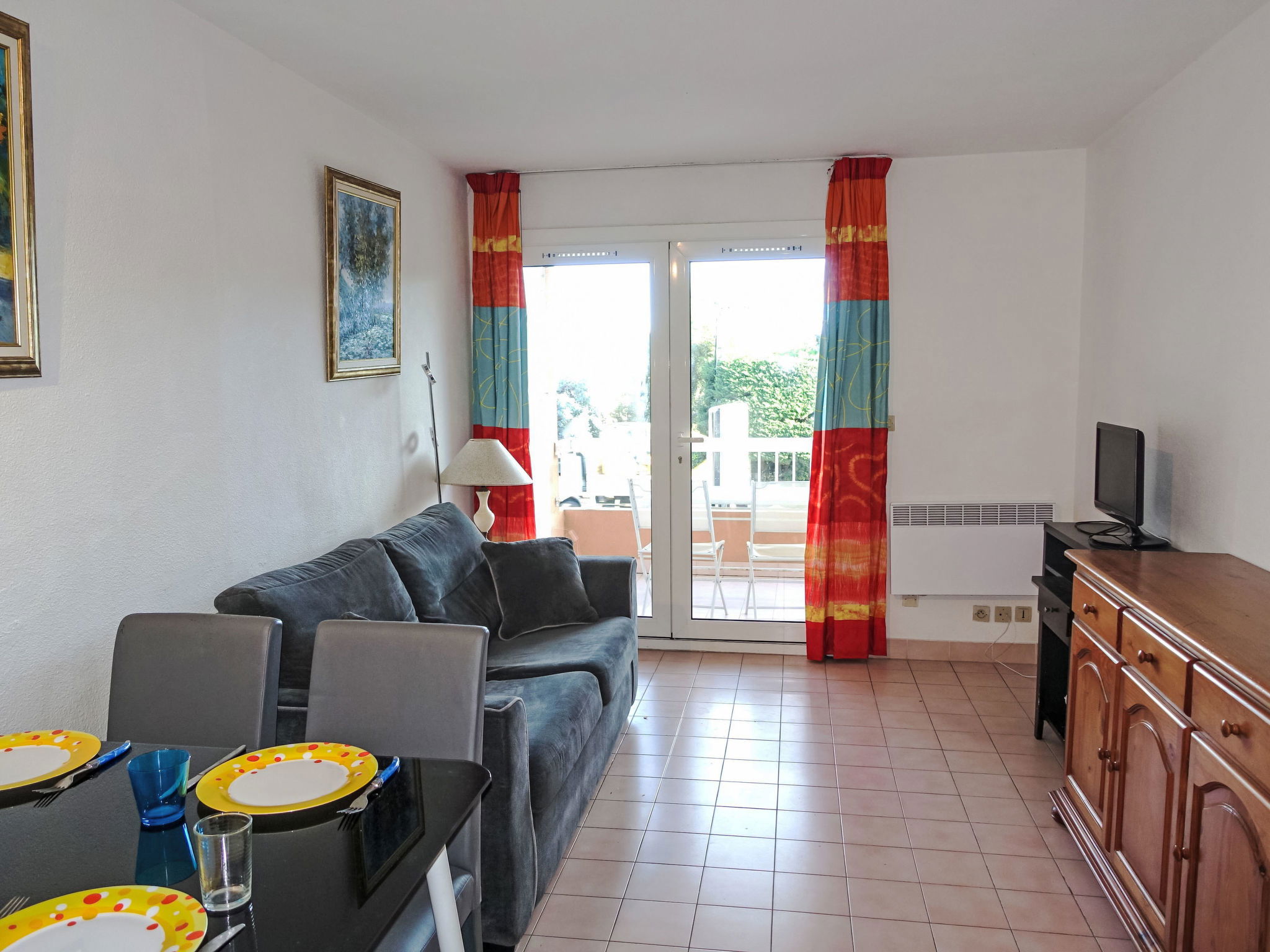 1-room apartment 27 m2 on 1st floor, south-east facing position. Simple furnishings: living/dining room with 1 double sofabed (1 x 140 cm, length 190 cm), TV (flat screen), fan. Exit to the terrace. Sleeping alcove with 1 x 2 bunk beds (80 cm), fan. Kitchenette (4 hot plates, oven, toaster, kettle, microwave, freezer, electric coffee machine). Bath/WC. Electric heating. Terrace 6 m2 partly roofed, south-east facing position. Terrace furniture, deck chairs (1). Facilities: hair dryer. Internet (WiFi, extra). Parking space n 4. Please note: not suitable for children under 6 years apartment street side. Non-smokers only. TV only FR. Smoke alarm. Instead of an enclosed bedroom, some sleeping areas are located in an open-plan area (gallery, alcove, etc.). OSLQAS