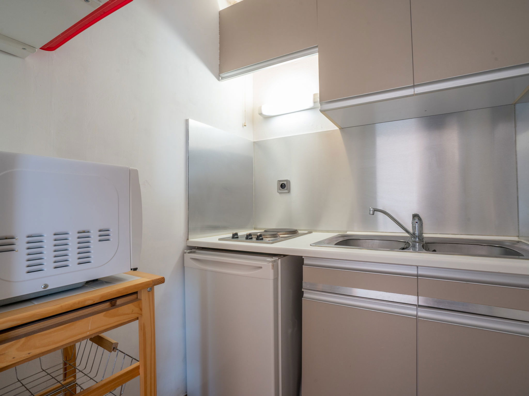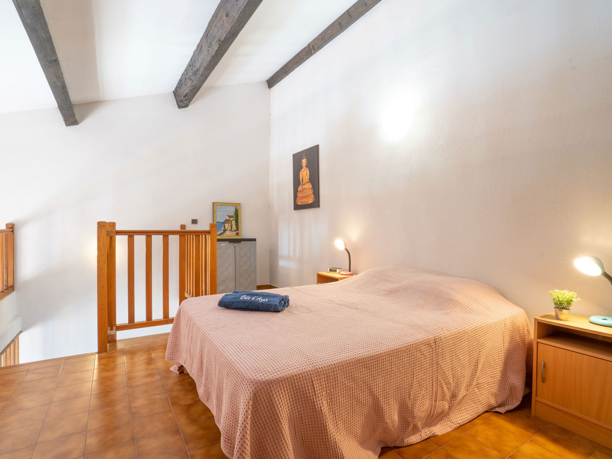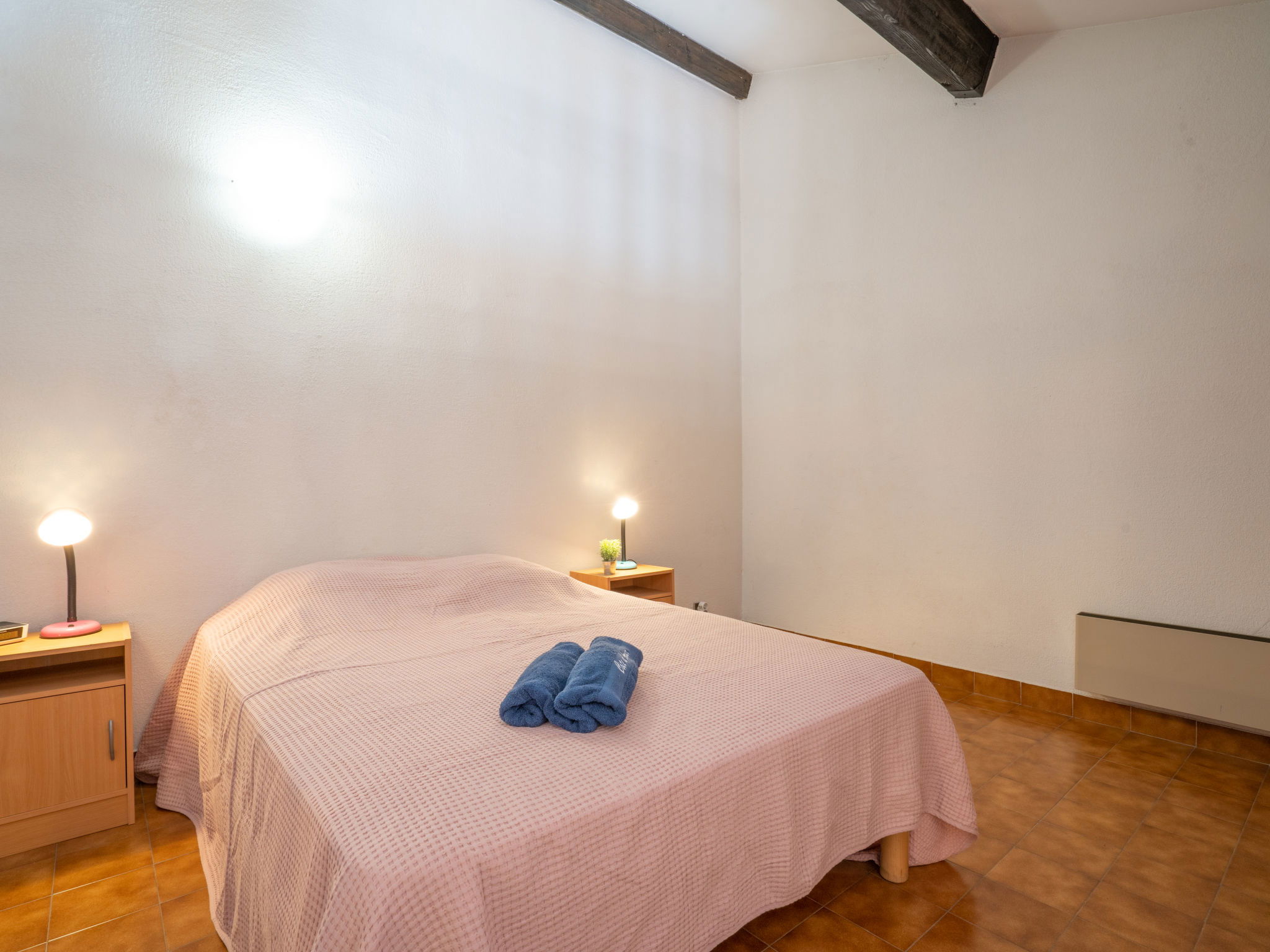 2-room apartment 41 m2 on 2 levels on 4th floor, south-east facing position. Simple furnishings: living/dining room with 1 sofabed, TV, radio and air conditioning. Exit to the terrace. 1 small room with 1 x 2 bunk beds (90 cm, length 190 cm), fan. Gallery with 1 french bed (1 x 140 cm, length 190 cm). Small kitchen (2 hot plates, toaster, kettle, electric coffee machine, combination microwave). Bath/WC. Heating. Terrace 5 m2. Terrace furniture. View of the sea. Facilities: iron, hair dryer. Internet (WiFi, extra). Please note: TV only FR. Smoke alarm. Instead of an enclosed bedroom, some sleeping areas are located in an open-plan area (gallery, alcove, etc.). FJS1139HT