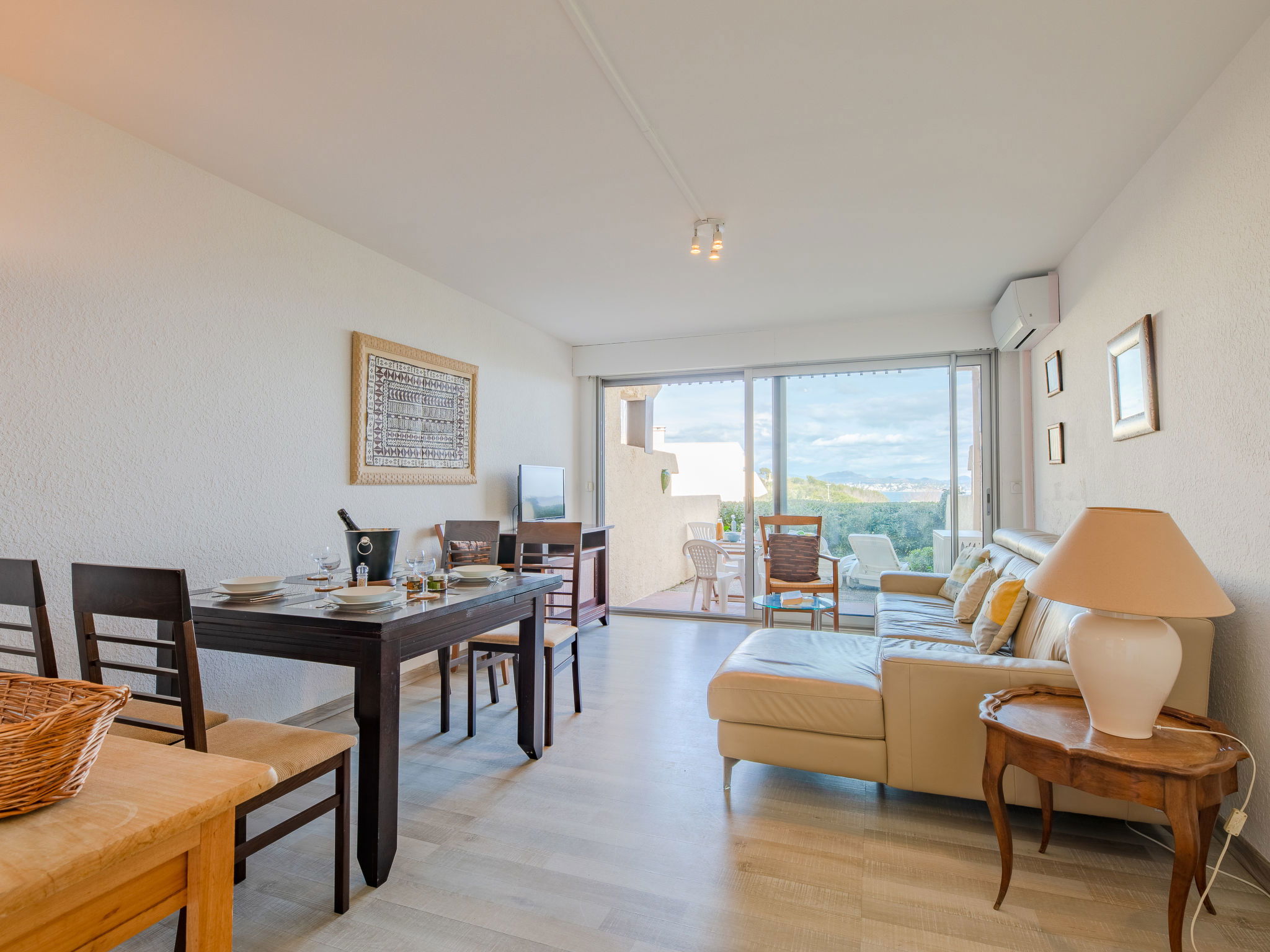 3-room apartment 62 m2, on the ground floor, north-east facing position. Beautiful furnishings: living/dining room with panoramic window with TV, air conditioning and electric shutters. Exit to the terrace. 1 room with 2 beds (90 cm, length 190 cm), air conditioning. 1 room with 1 bed (180 cm, length 200 cm), air conditioning. Kitchenette (4 hot plates, oven, dishwasher, toaster, kettle, microwave, freezer, electric coffee machine). Shower, sep. WC. Heating, air-conditioning. Large terrace. Terrace furniture, deck chairs (1). Very beautiful view of the sea. Facilities: safe, iron, hair dryer. Internet (WiFi, extra). Parking space n 10. Please note: suitable for families. TV only FR. Smoke alarm. FJS1151HT