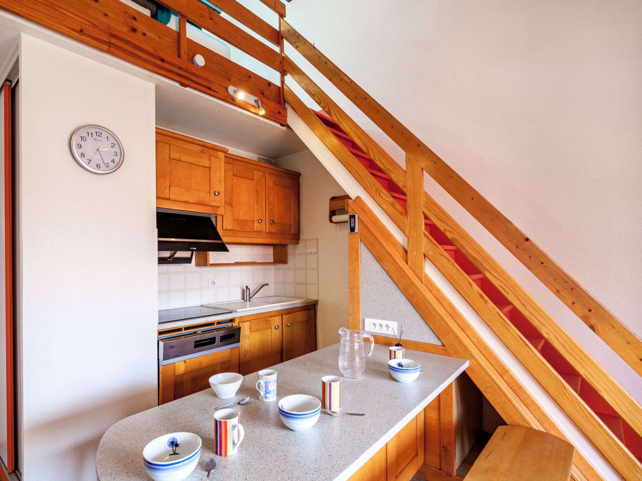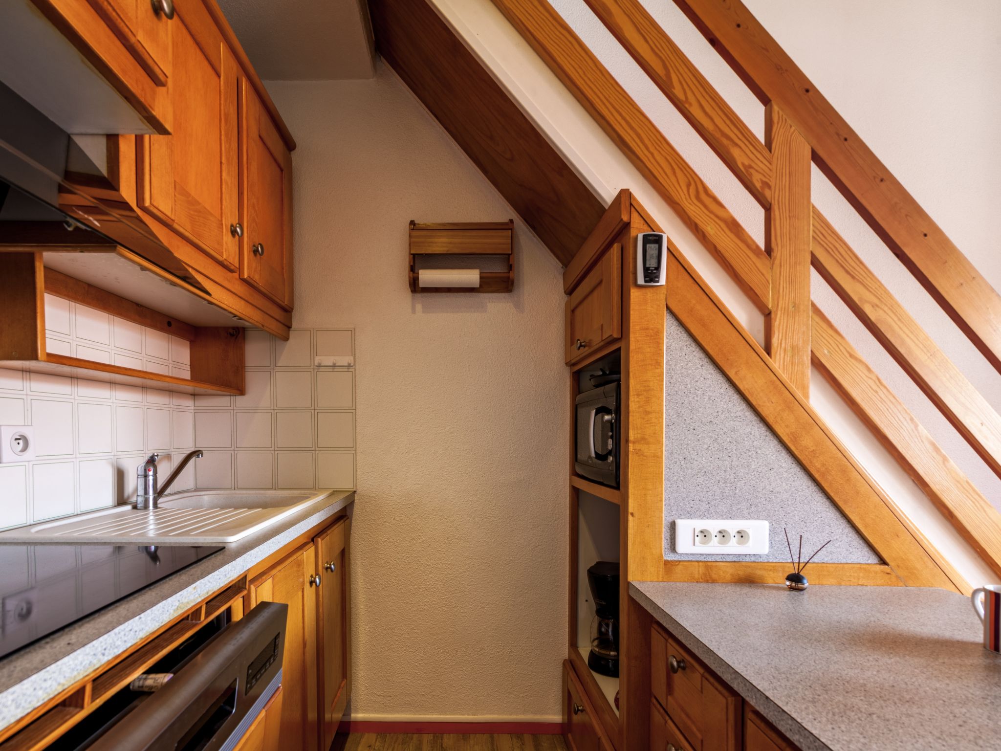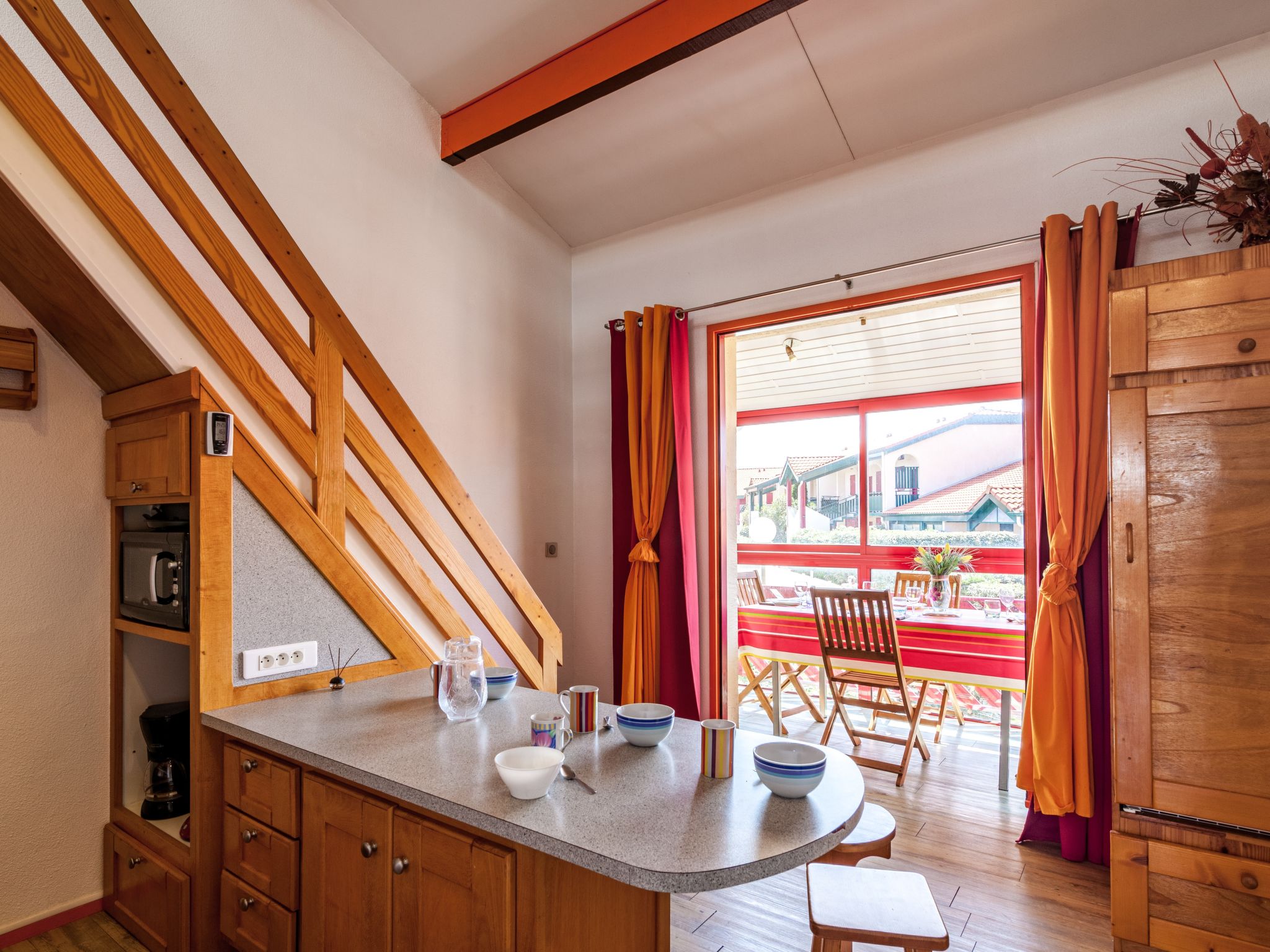 2-room apartment 30 m2 on 2 levels on 1st floor. Object suitable for 2 adults + 2 children. Comfortable and beautiful furnishings: entrance hall. 1 small room with 1 x 2 bunk beds (90 cm, length 190 cm). Open kitchen (dishwasher, 3 induction hot plates, toaster, kettle, microwave) with dining table. Exit to the veranda. Shower, sep. WC. Electric heating. Upper floor: open gallery with 1 double sofabed (160 cm, length 190 cm), TV (flat screen). Terrace furniture. View of the swimming pool. Facilities: washing machine, iron. Internet (WiFi, free). Parking space n 51. Please note: suitable for families. Non-smokers only. Smoke alarm. 40065000643F2