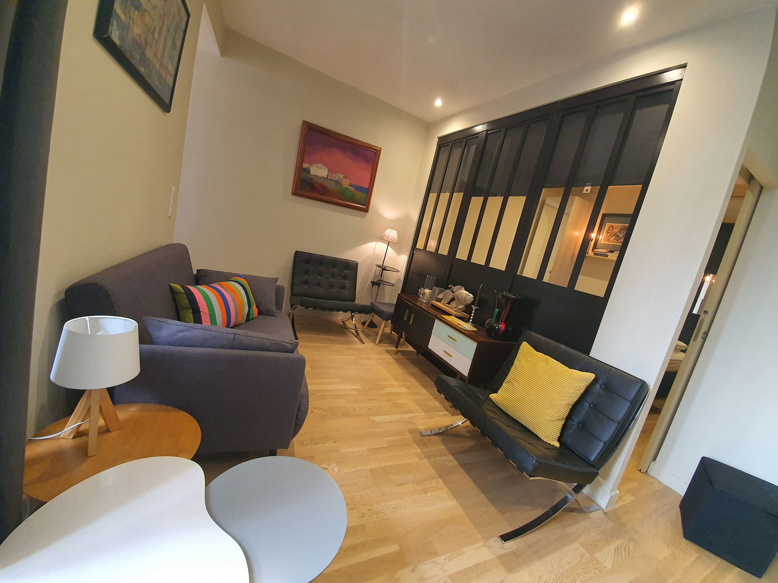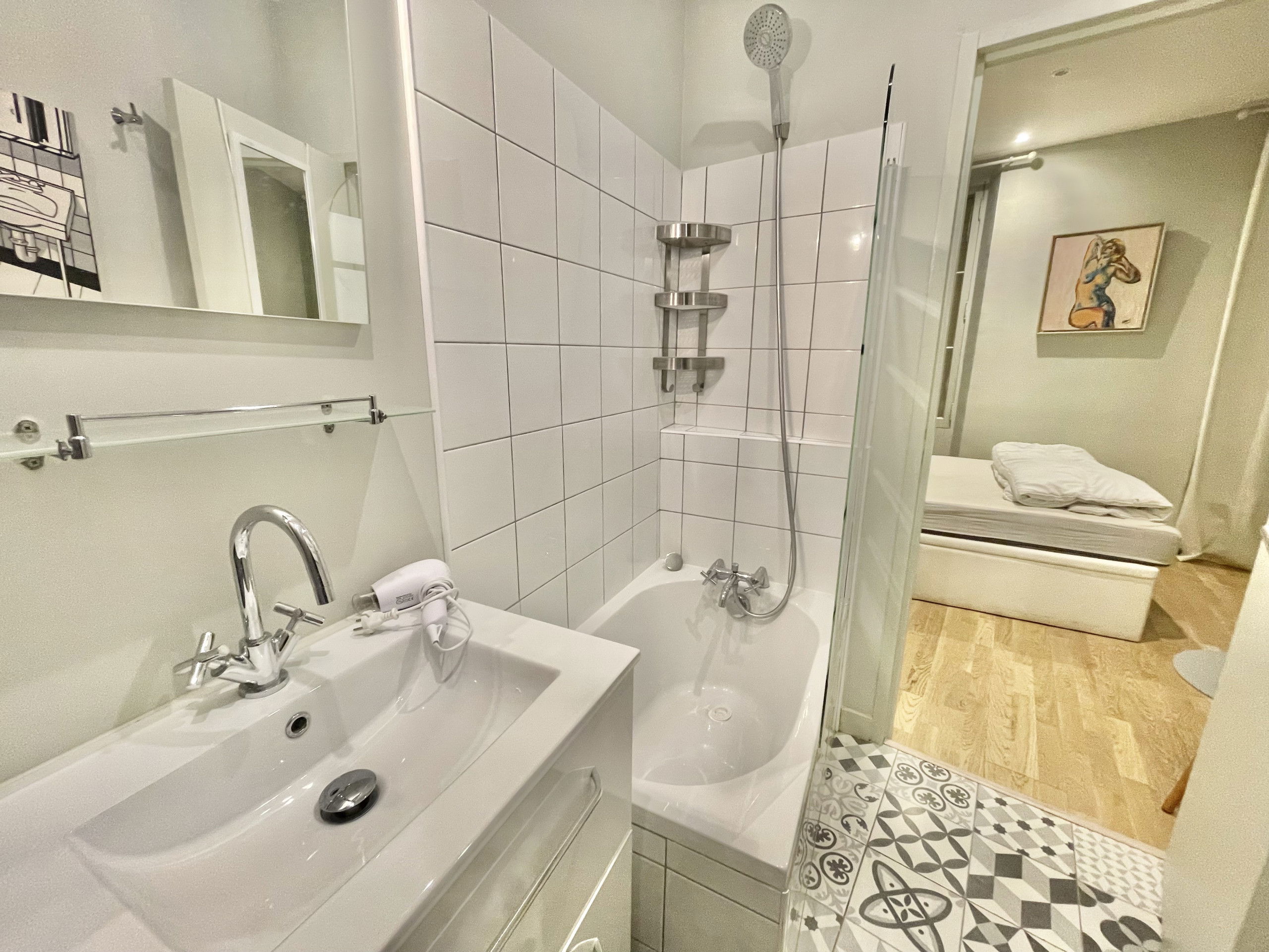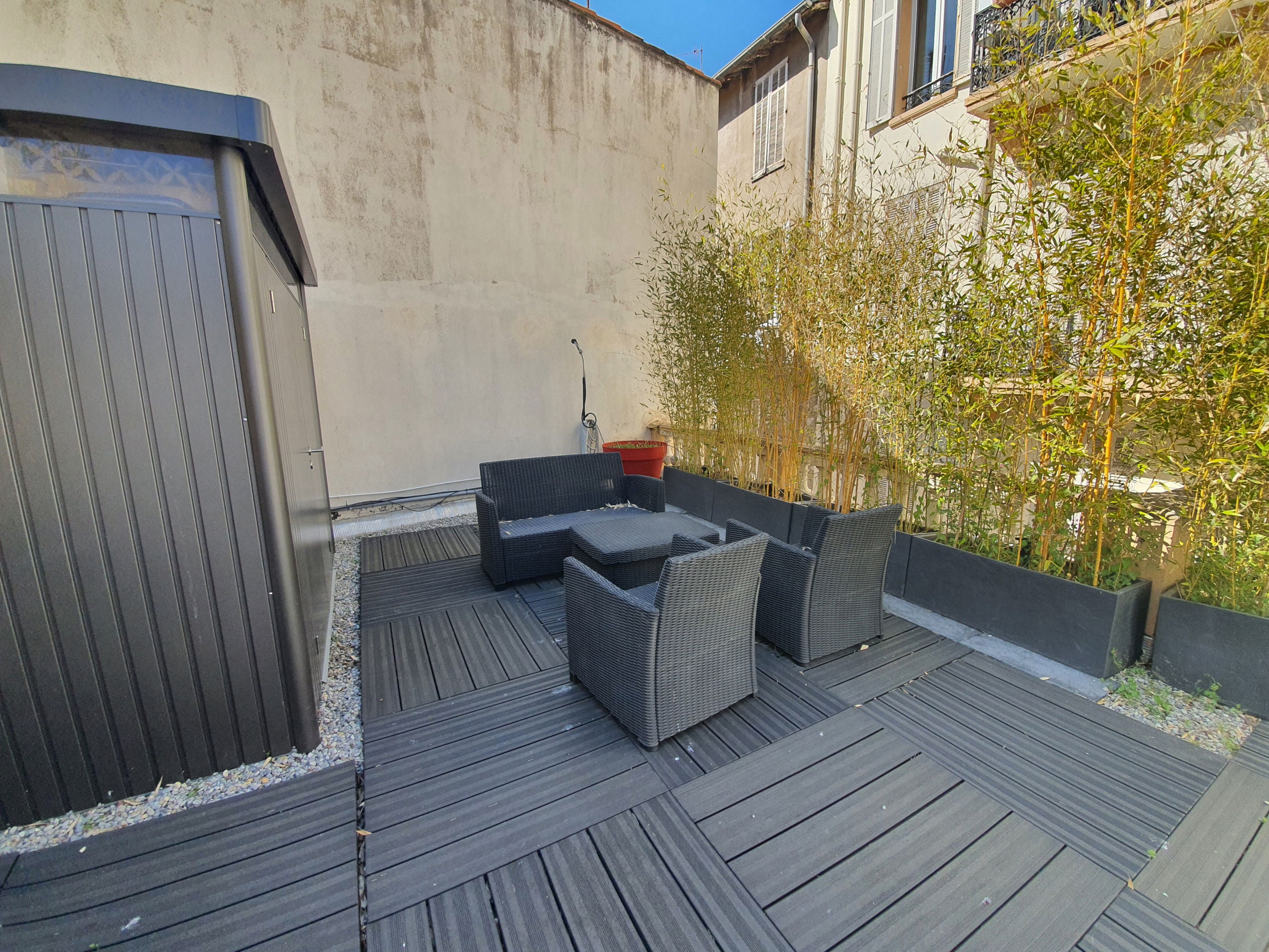 In the heart of the city center, ideal location 7 minutes walk from the Palais des Festivals, this charming 3-room apartment in a quiet area features a living room and a fully equipped open kitchen, two bedrooms with an adjoining bathroom and shower room, and a spacious roof terrace. WiFi access and air conditioning included.