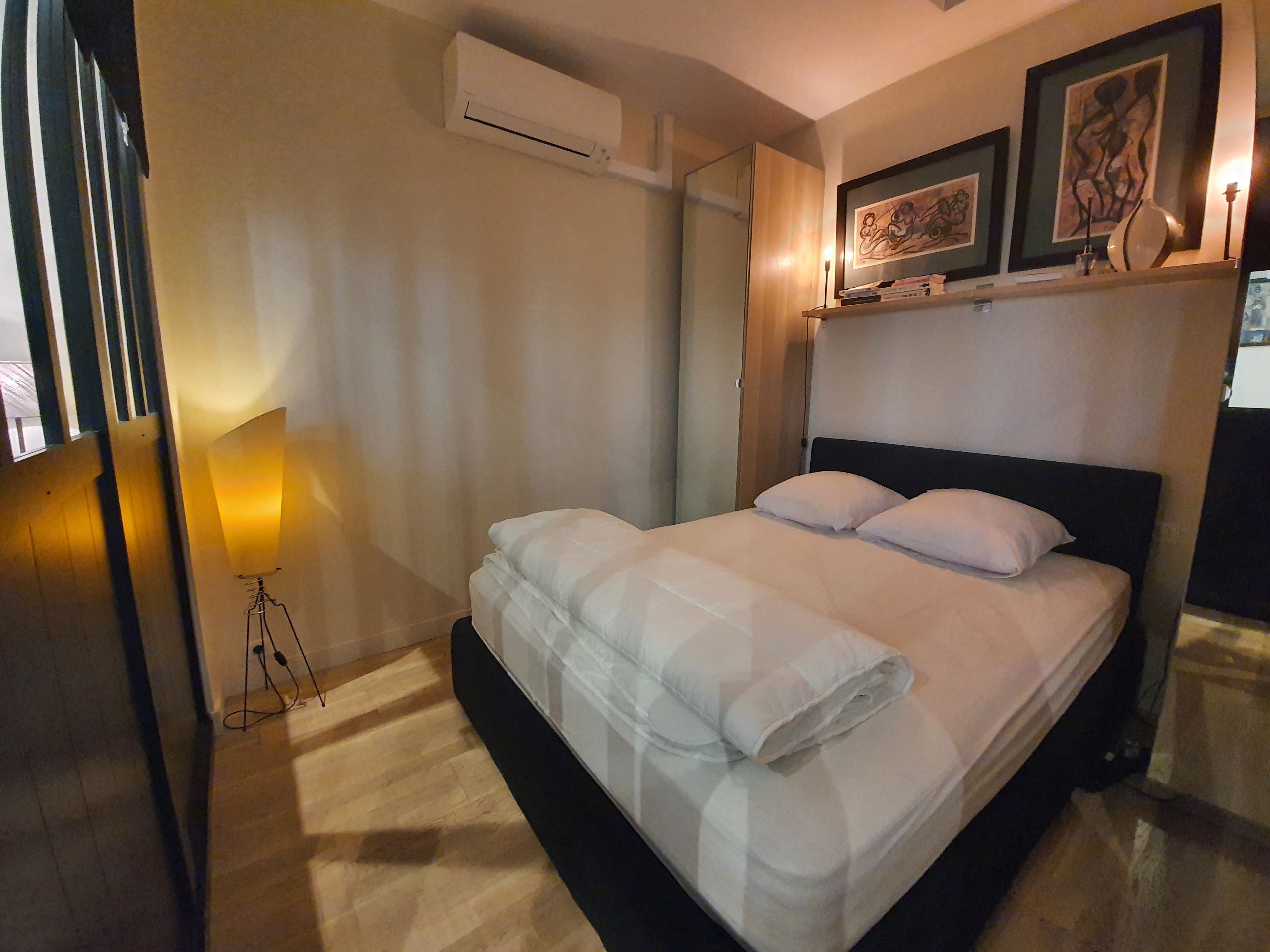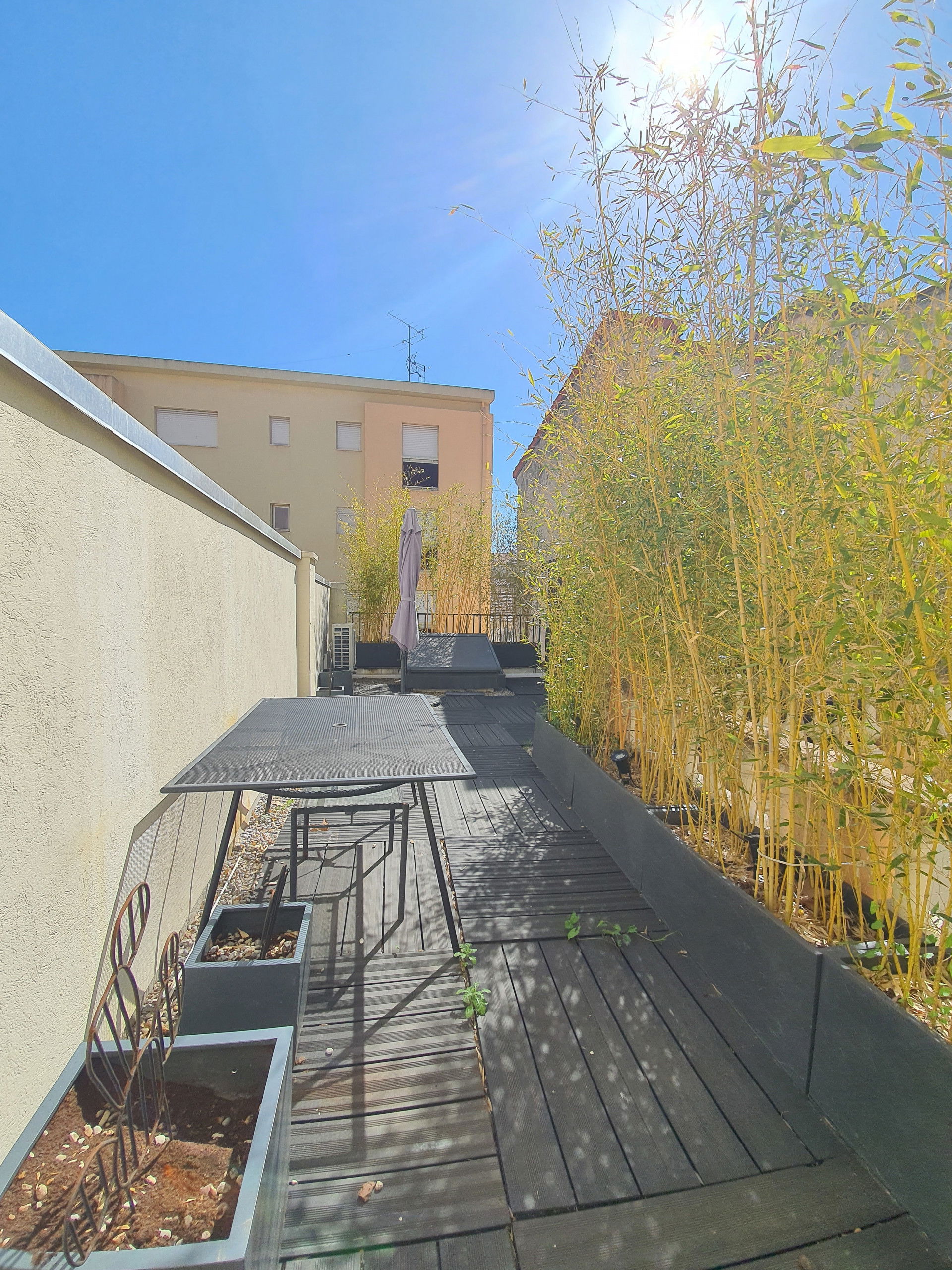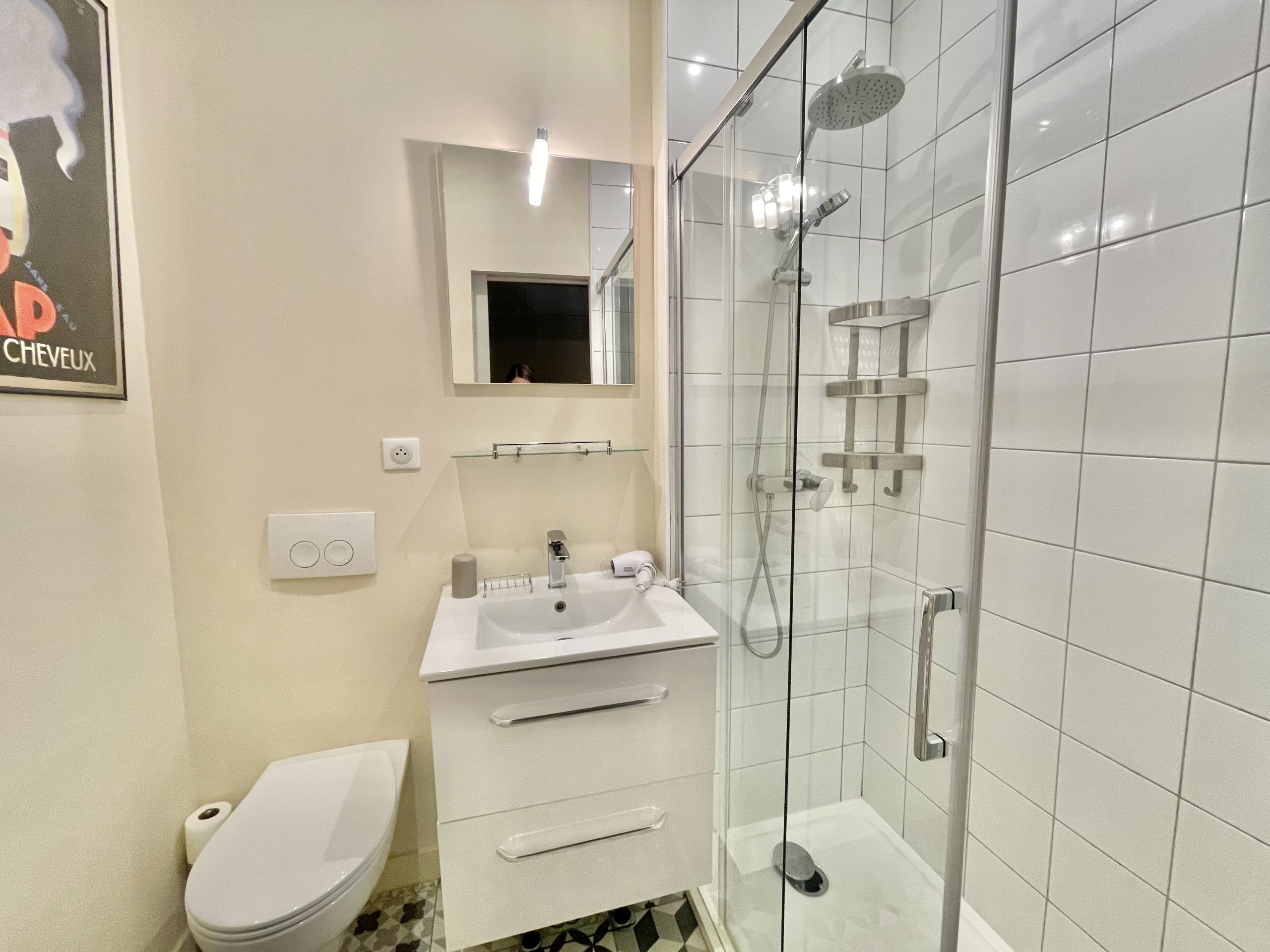 In the heart of the city center, ideal location 7 minutes walk from the Palais des Festivals, this charming 3-room apartment in a quiet area features a living room and a fully equipped open kitchen, two bedrooms with an adjoining bathroom and shower room, and a spacious roof terrace. WiFi access and air conditioning included.