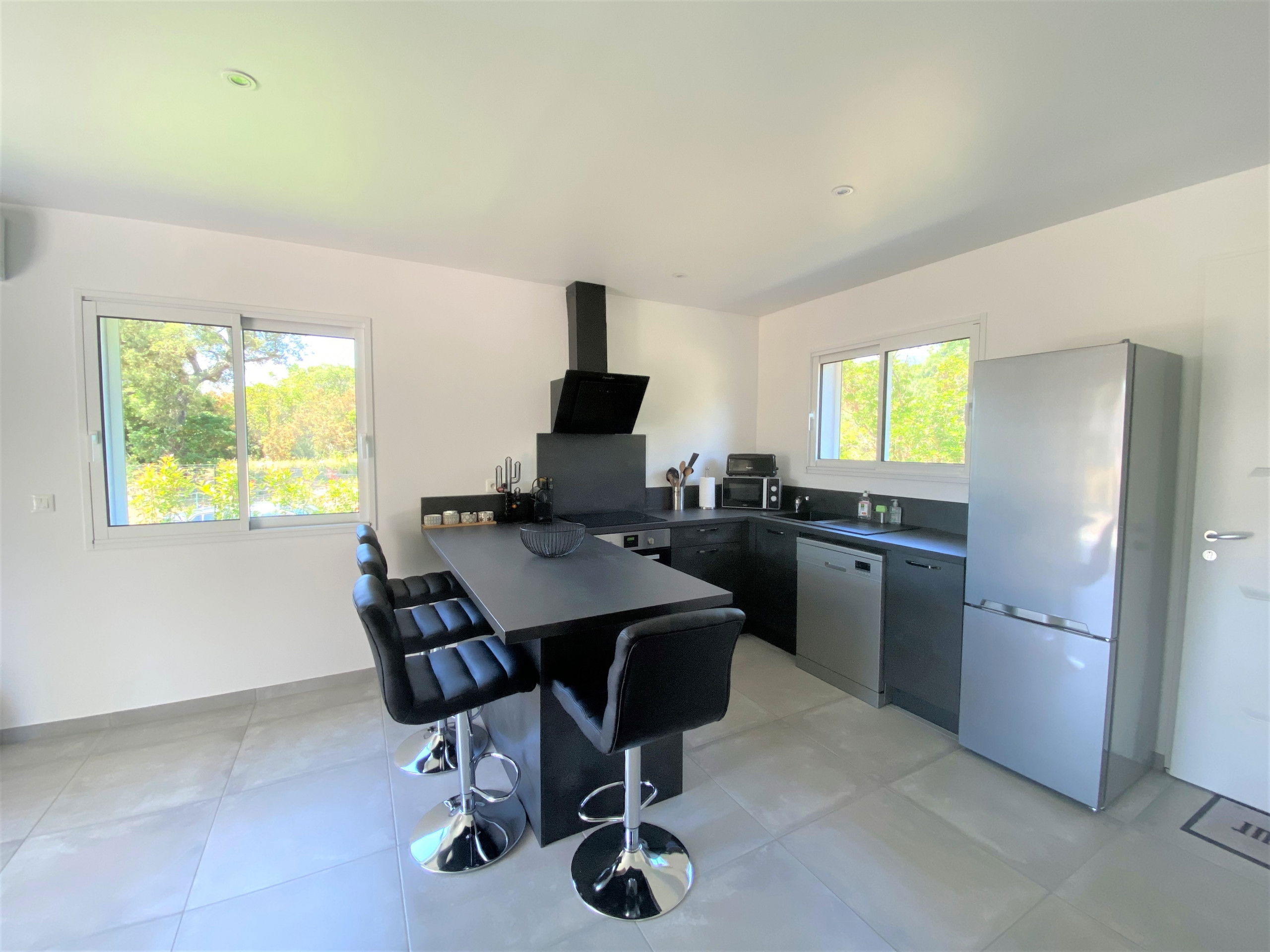 New and fully equipped villa of 55 m² with 2 bedrooms located in a quiet area with a nice landscaped garden of 400 m² fully fenced with a large terrace in IPE with heated and secured swimming pool.