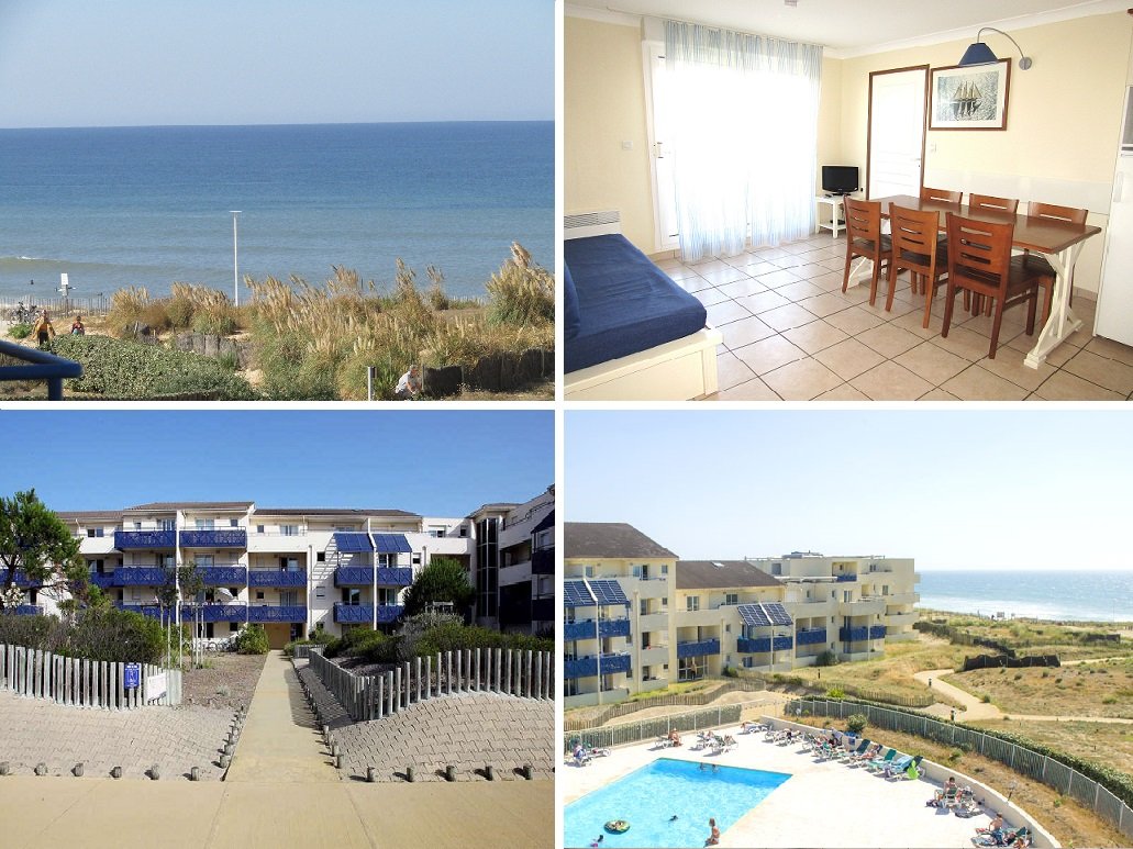 In the ‘Bleu Marine’ seafront residence with swimming pool, in the south of Lacanau, with a lovely sea view from the double terrace, pleasant, large flat, approx. 45 m², on the 2nd floor, sleeps 5. Quiet, secure residence with swimming pool (open from 15 June to 15 September), play area, lift and laundry facilities. Direct access to the beach via a gate at the end of the residence. The kitchen area opens onto the living room, equipped with a sofa bed (140 cm). The lounge/dining room opens onto the south-west-facing double terrace, with garden furniture. Sleeping accommodation is divided between the double bedroom (140 cm bed) and the cabin bedroom with bunk beds (90 cm). Bathroom facilities include a bath, washbasin and separate WC. Private parking space in the basement. Reach the beach and surf schools 100 m away, shops, restaurants, ice-cream parlours and boutiques 500 m away, the golf course 3 km away or the lake approx. 6 km away (REF 02422) ANCV holiday vouchers accepted.