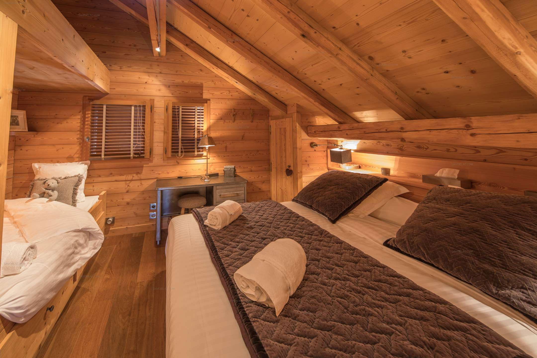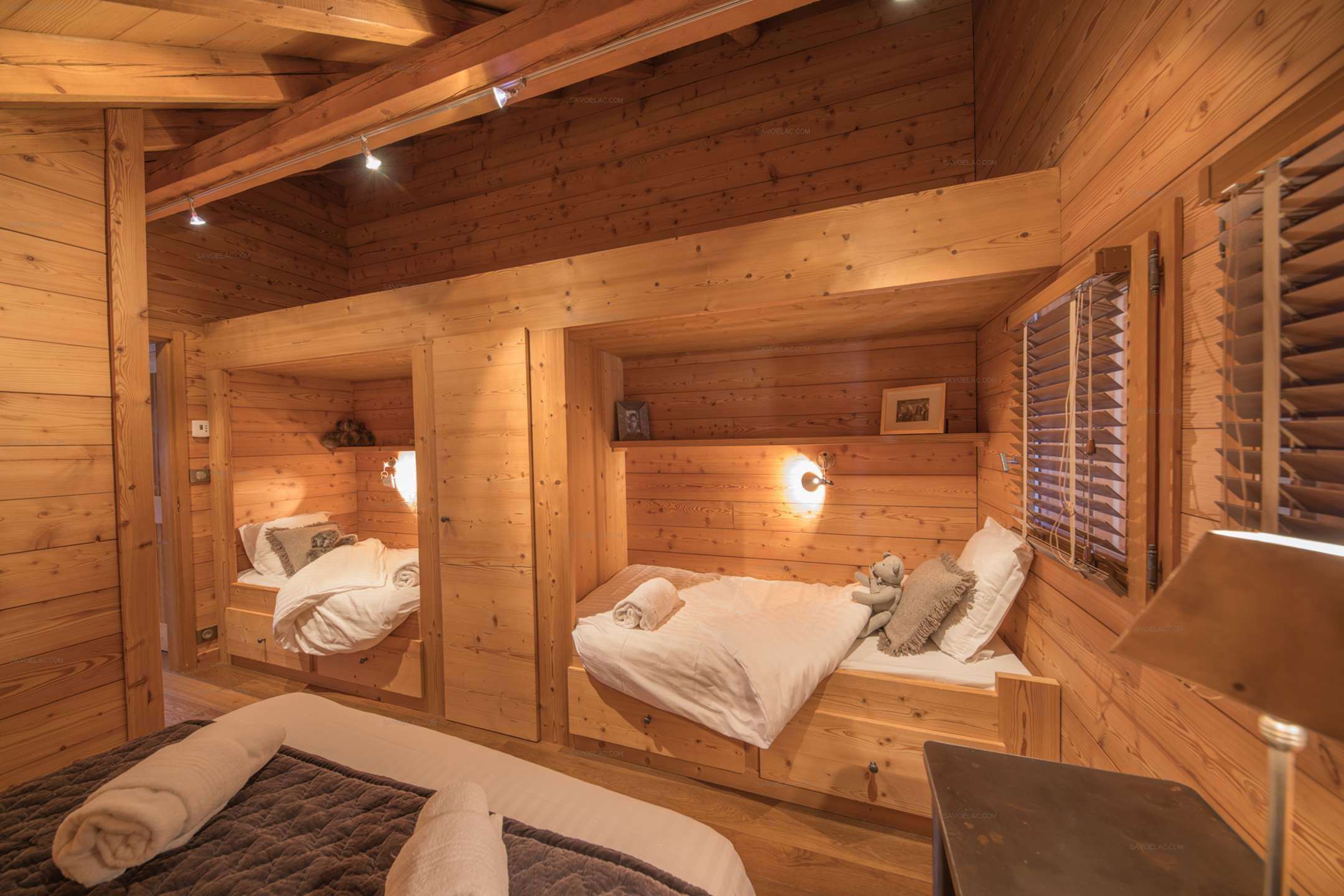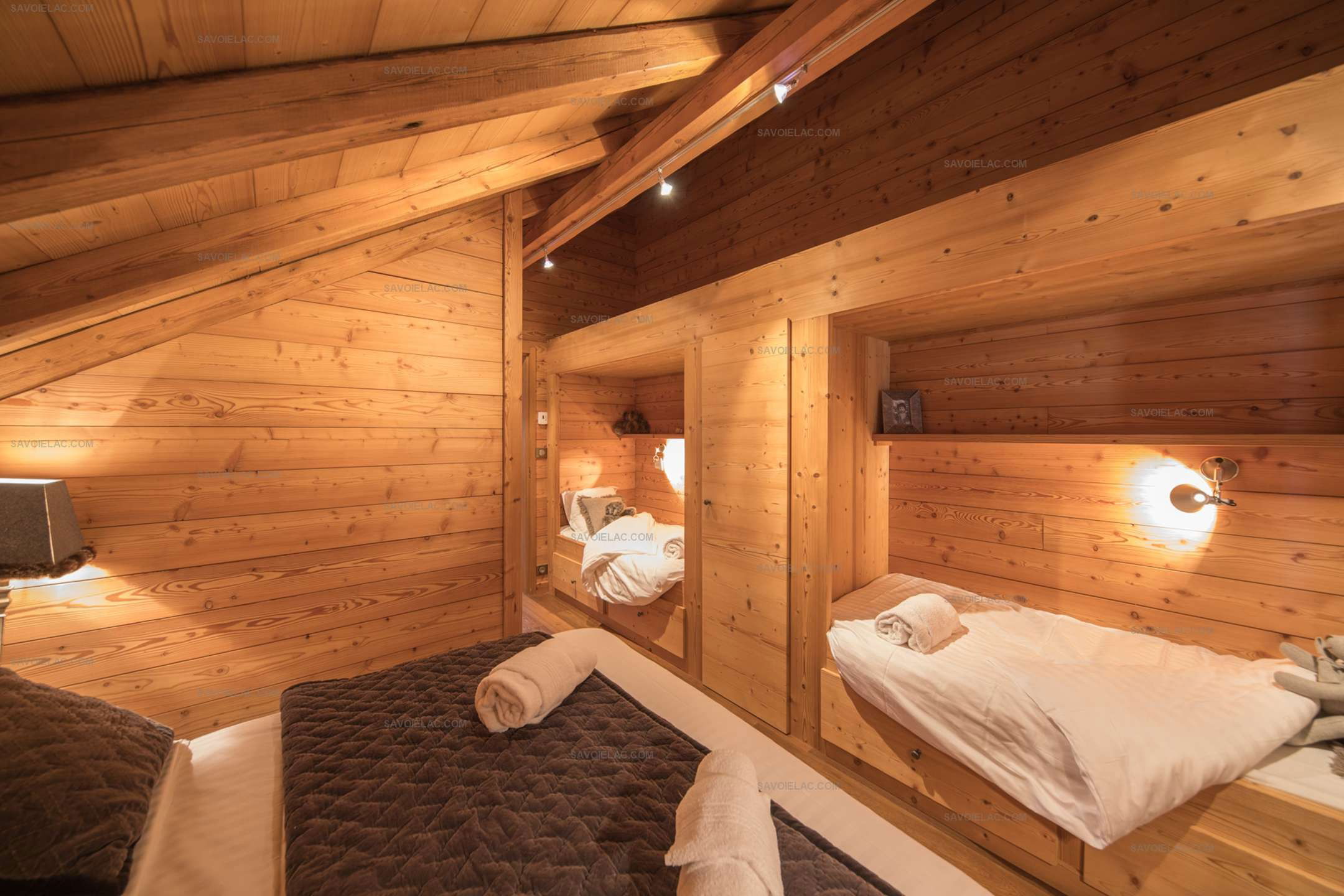 Bedroom 4: double bed 160 cm + 2 single beds of 90 cm in alcove Bathroom 3: shower, sink, towel dryer.