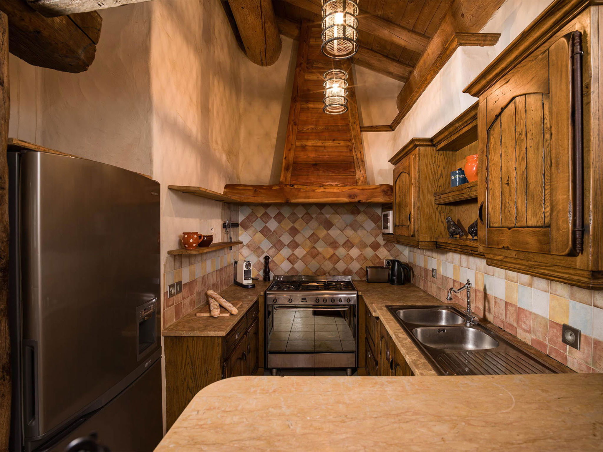 Exit to the balcony. 1 room with 1 double bed and shower/WC. Open kitchen (oven, dishwasher, 4 ceramic glass hob hotplates, toaster, kettle, freezer, electric coffee machine, raclette grill). 3nd upper floor: open gallery with sloping ceilings with satellite TV. Electric heating. Wooden floors, natural stone floors. 3 balconies.