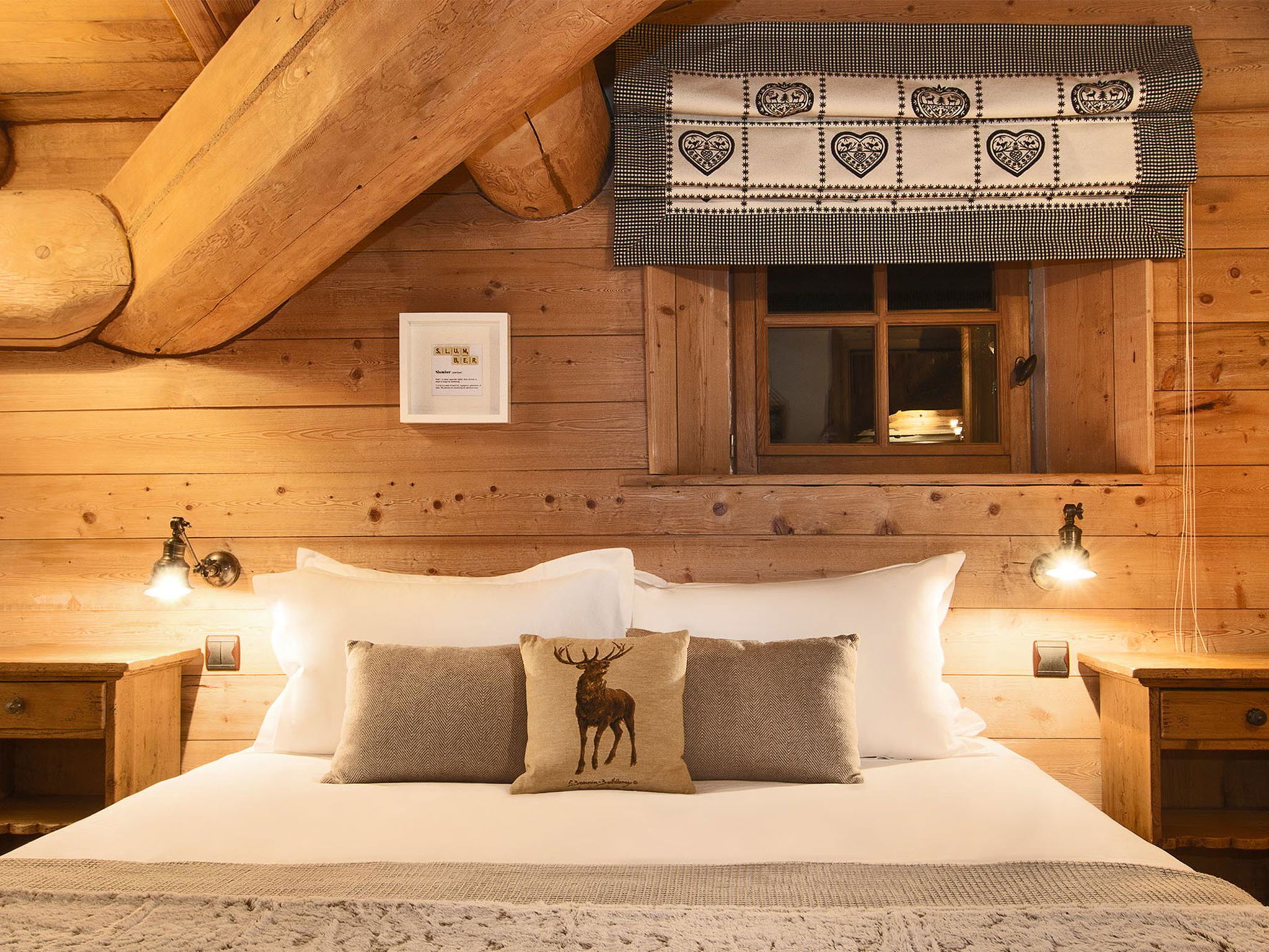 6-room chalet on 4 levels. Tasteful and wooden furniture furnishings: luggage room. Upper floor: 2 rooms, each room with 1 double bed and bath/WC. 2 rooms, each room with 1 double bed and bath/WC. Exit to the balcony. 2nd upper floor: living/dining room with open-hearth fireplace and dining table.