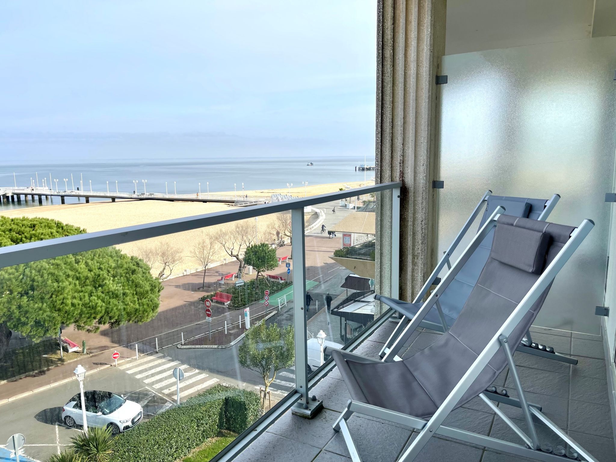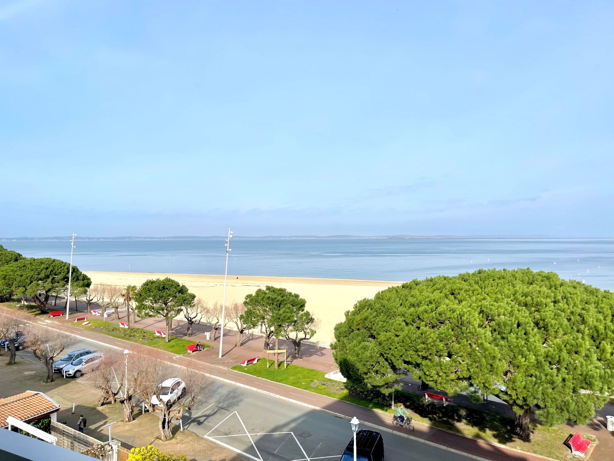 Arcachon: Beautiful residence "Claire". In a central, busy position, from the sea, 50 m from the beach. In the complex: lift, storage room for bicycles. Shop 50 m, grocery, supermarket 260 m, shopping centre 5 km, restaurant, bar 50 m, bakery 190 m, café 50 m, bicycle rental 260 m, 1 minute walk to the centre, bus stop "Casino d'Arcachon" 450 m, railway station "Arcachon" 1.3 km, sandy beach "Thiers" 50 m, park "Mauresque" 650 m. Sports harbour 3.4 km, golf course (18 hole) 3.8 km, cycle lane 10 m. Nearby attractions: Aqualand 9.4 km, ArcaJetMarine 2.4 km, Eratopia 9.5 km, Jetée maritime pour le cap ferret 50 m, Casino 450 m, Dune du Pyla 9.7 km. Well-known lakes can easily be reached: Lac de la Magdeleine 10 km, Lac de Cazaux 16.5 km. Please note: the keys‘ handover takes place by the agency in Arcachon. Additional accommodations can be booked. Neighbourhood highly sensitive to noise. Quietness and good behaviour expected.