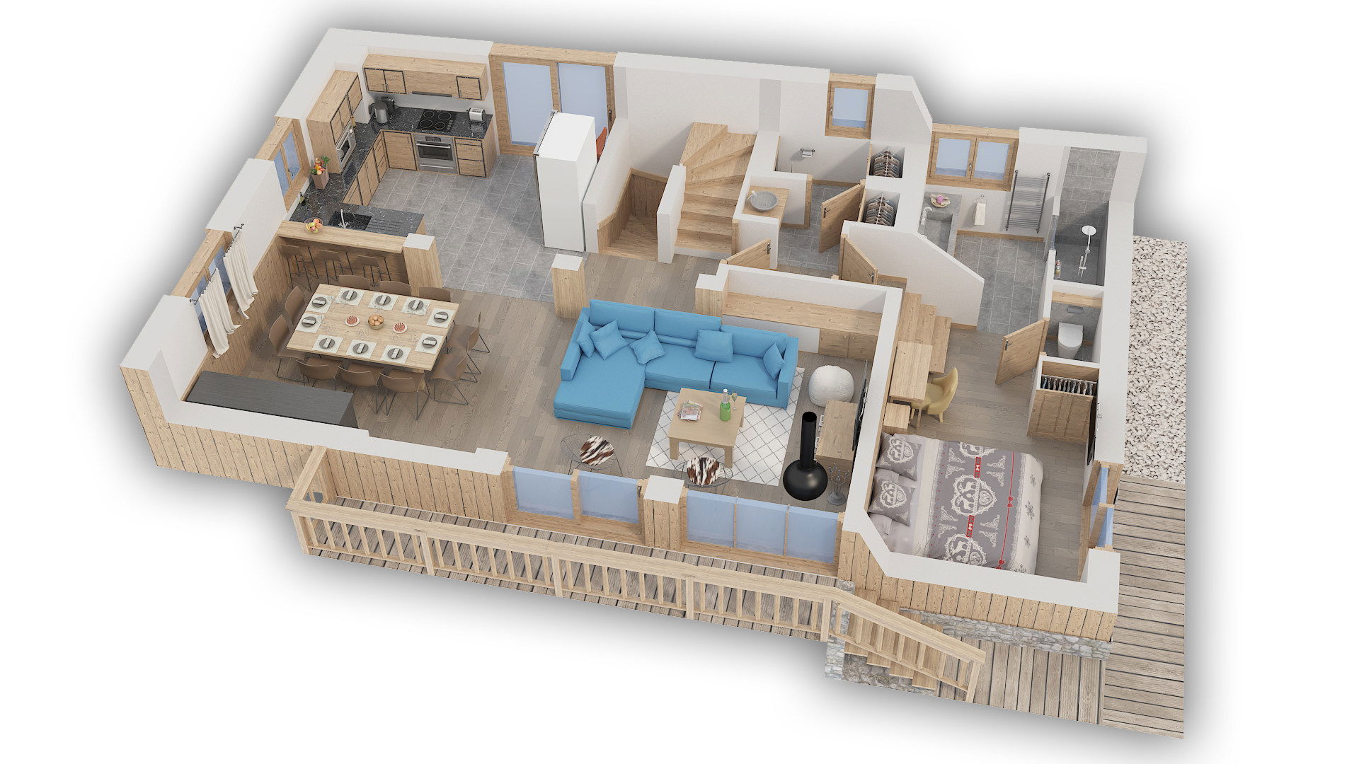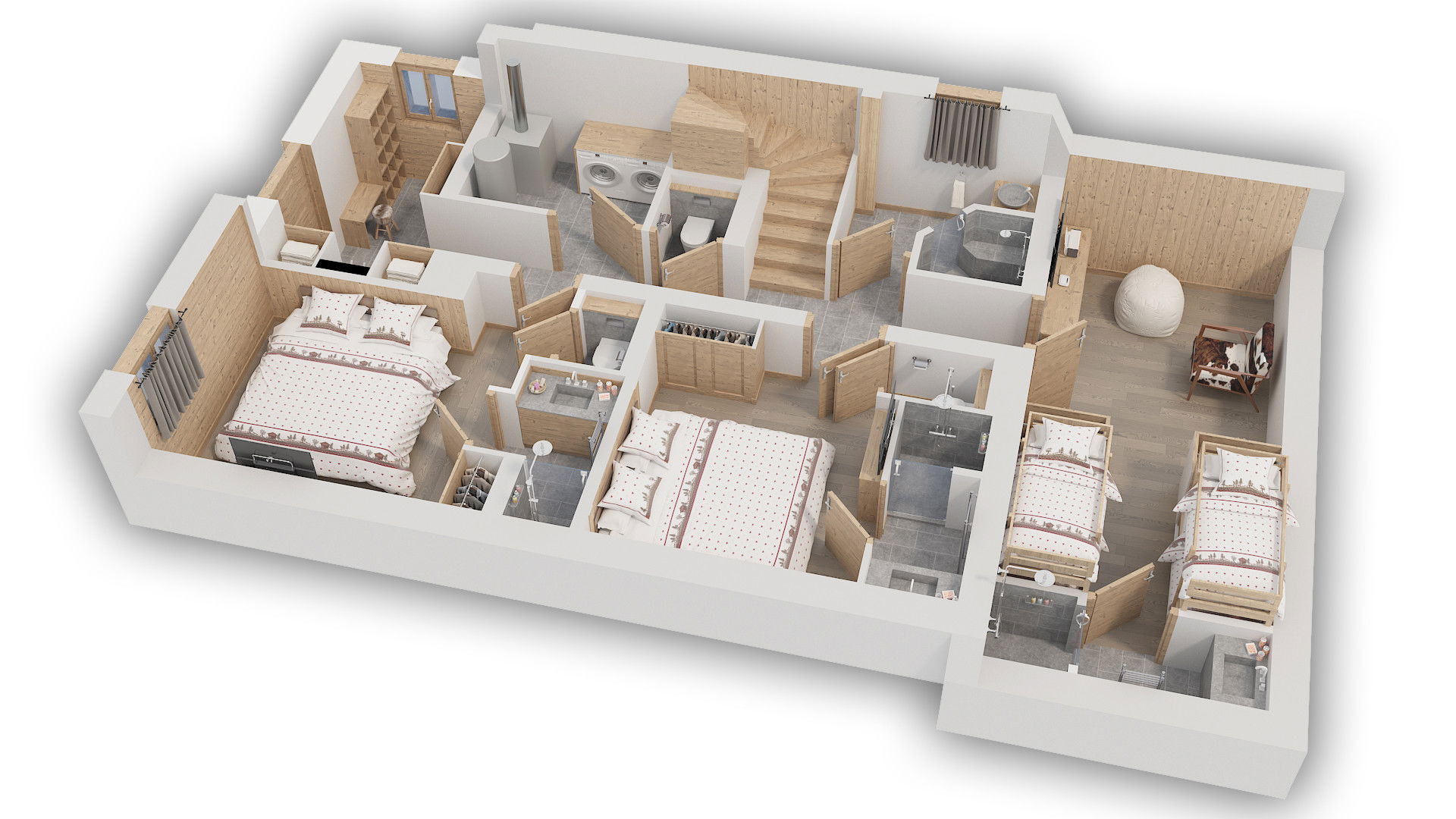 Elegant chalet in a warm and mountain atmosphere. With a surface of 175m ², it has 4 bedrooms, a dormitory and is equipped for 8 adults and 4 children. It is located in the Raffort hamlet, 5 minutes from the "Olympe" gondola. Free shuttle bus to go to the center of Méribel is at 150m.