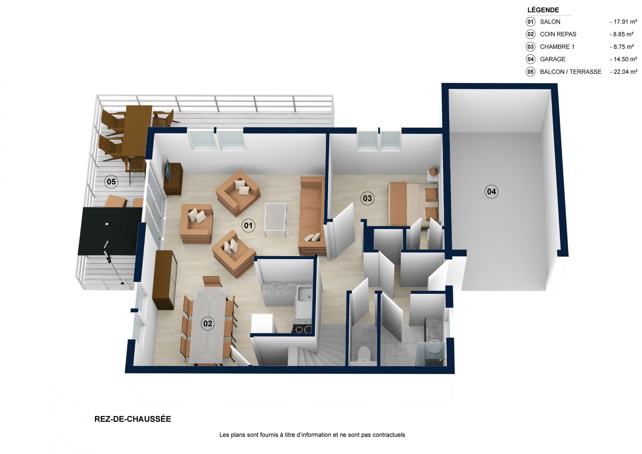 8 pers. / 89 m² + 9 m² inf. à 1,80m / 5 rooms / 4 * / South West / Wi-Fi included