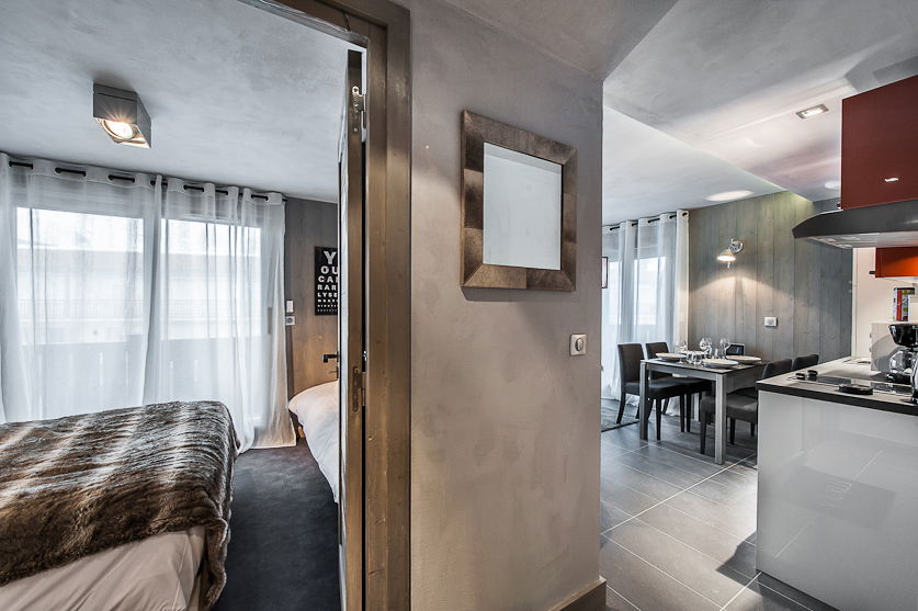 The comfortable 1-bedroom apartment "TARINE" is situated in the Chalet Les 3 Vaches at the center of the resort and close to the ski lifts.