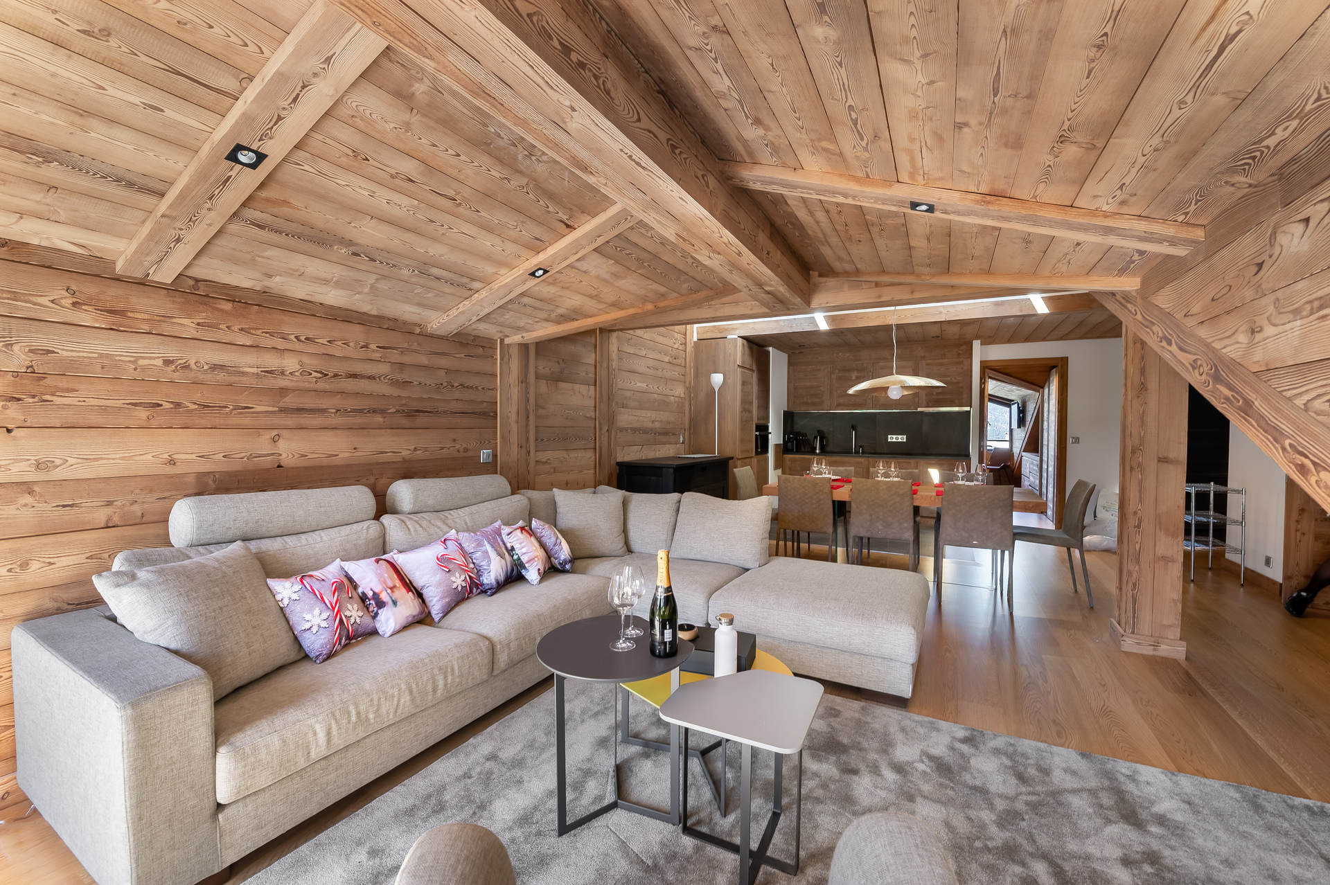 Magnificent apartment located on the top floor of the GRANDES BOSSES residence. With a surface area of 103m², it can accommodate up to 6 adults and 2 children in its 3 ensuite bedrooms with one hammam shower and its mountain corner. Located in the heart of the resort of Courchevel Moriond, the Grandes Bosses 703 apartment offers ski-in/ski-out access.
