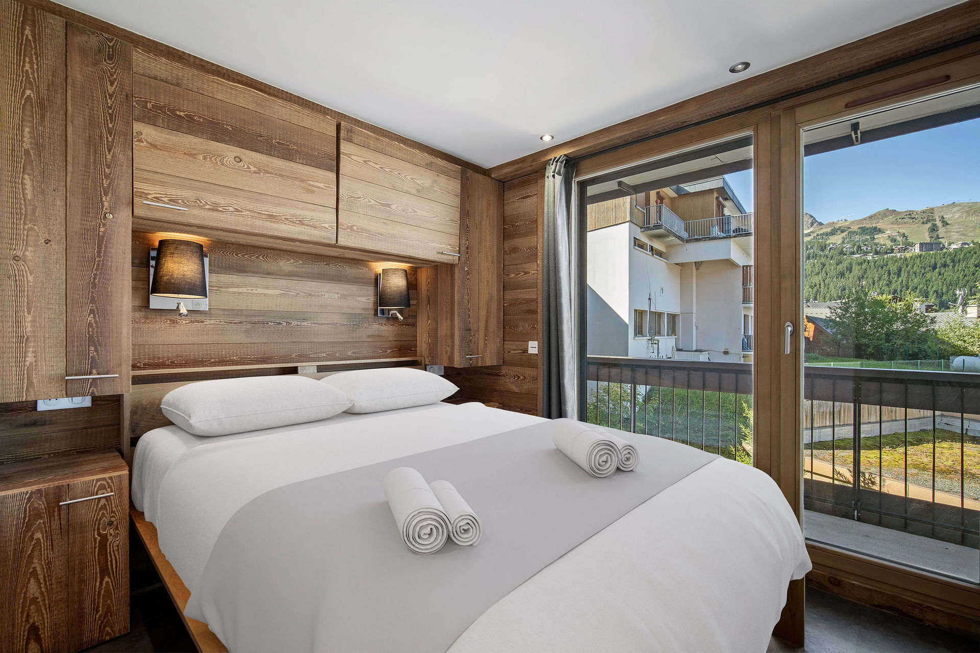 East-facing 2-room cabin apartment of 47m² that can sleep 6 persons. It is located on the 5th floor of a residence very close to the slopes and the shops. This comfortable apartment offers a very nice view of the mountains.