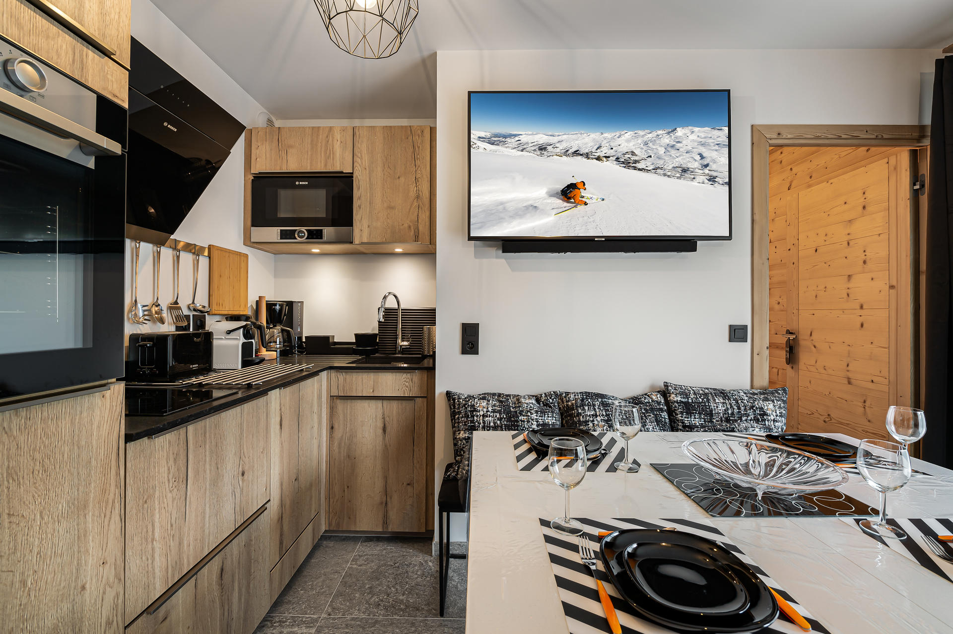 - Fully equipped open kitchen