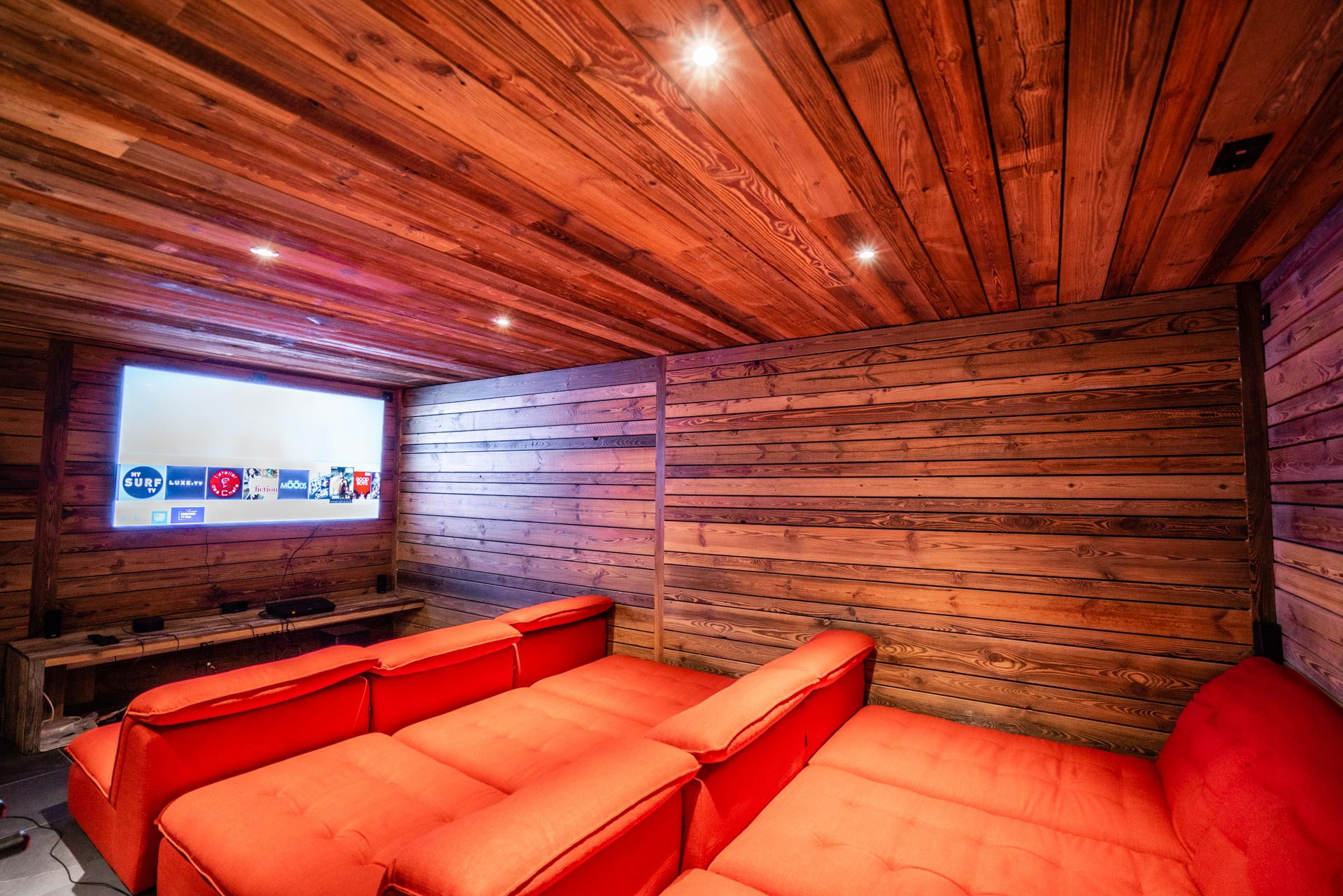 Home cinema with red sofas 15 people