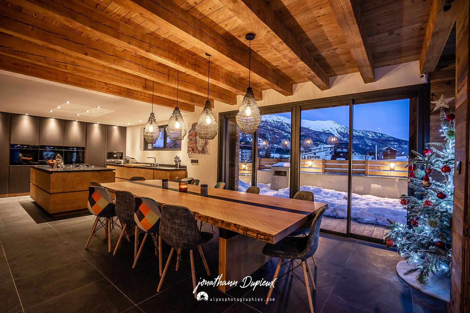 Located a few meters from all the shops and the small typical village of la salle les alpes, the chalet can accommodate up to 24 people with all the necessary comfort while declining the mountain spirit in resolutely modern volumes.