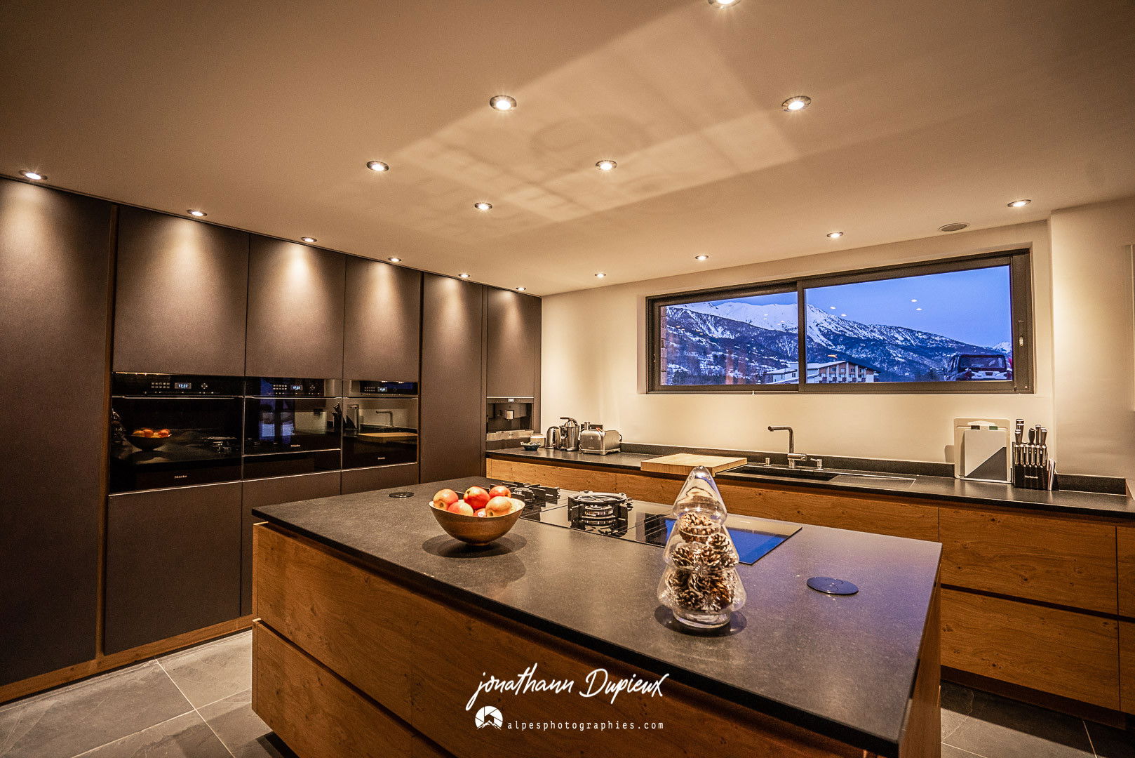 Bar, living room Dining room with large open kitchen, 3 ovens, integrated Nespresso, gas and induction hobs, raclette and fondue sets, etc.