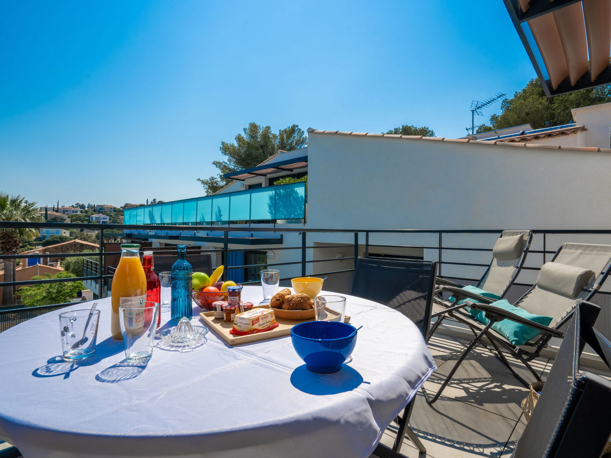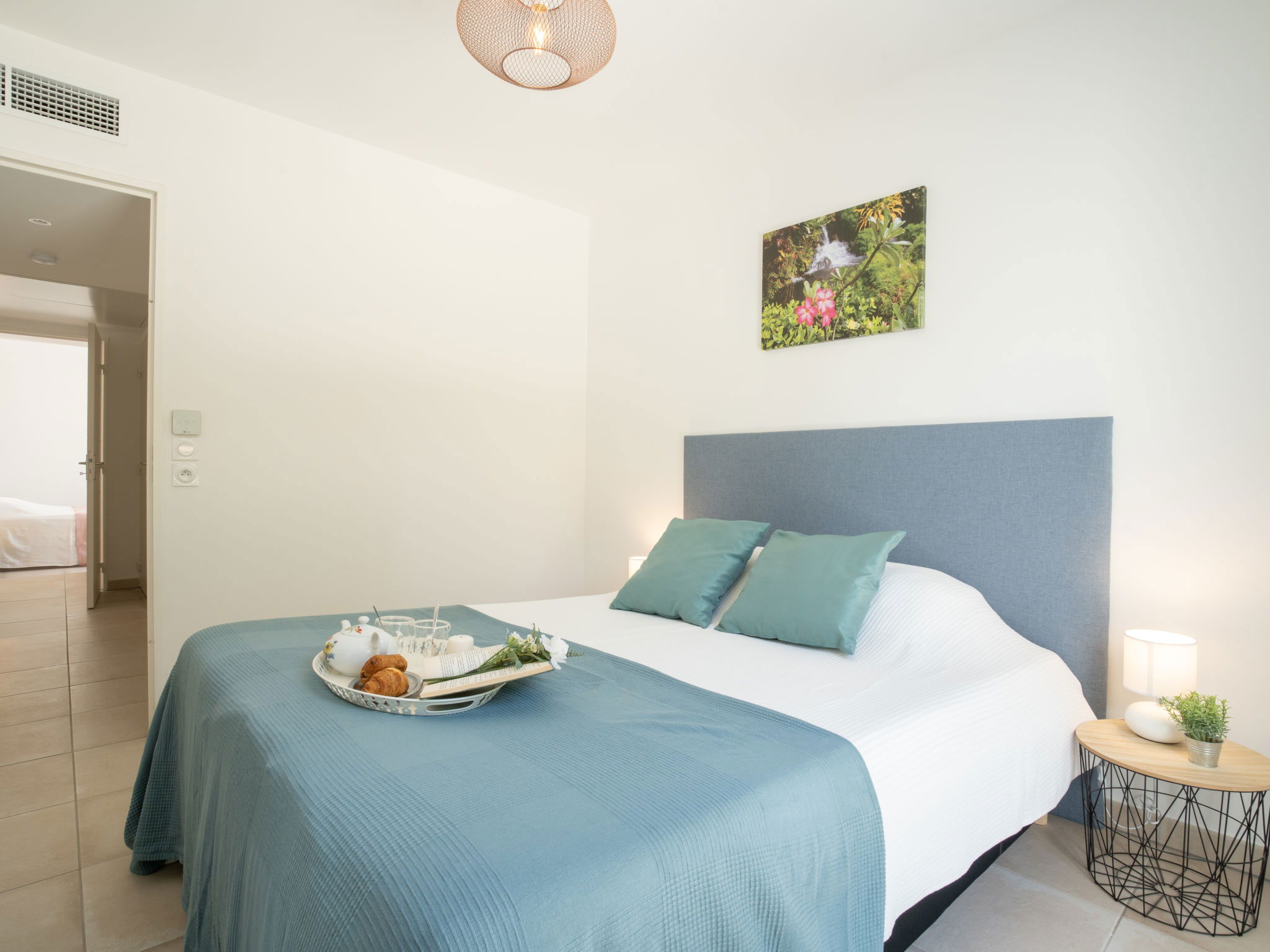 3-room apartment 61 m2 on 1st floor. Comfortable and modern furnishings: living/dining room with TV (flat screen), air conditioning and electric shutters. Exit to the terrace. 1 room with 1 french bed (1 x 160 cm, length 200 cm), TV (flat screen), air conditioning and electric shutters. 1 room with 1 french bed (1 x 140 cm, length 190 cm), air conditioning and electric shutters. Open kitchen (oven, dishwasher, 3 induction hot plates, toaster, kettle, microwave, freezer, electric coffee machine, Capsules for coffee machine (Senseo) extra). Shower, sep. WC, double hand-basin. Heating. Terrace 12 m2. Terrace furniture, deck chairs (2). Side view of the sea. Facilities: washing machine, iron, hair dryer. Internet (WiFi, free). Garage space n 15 (1 car), height 210 cm, width 218 cm. Please note: smoke alarm. 1CYX6X