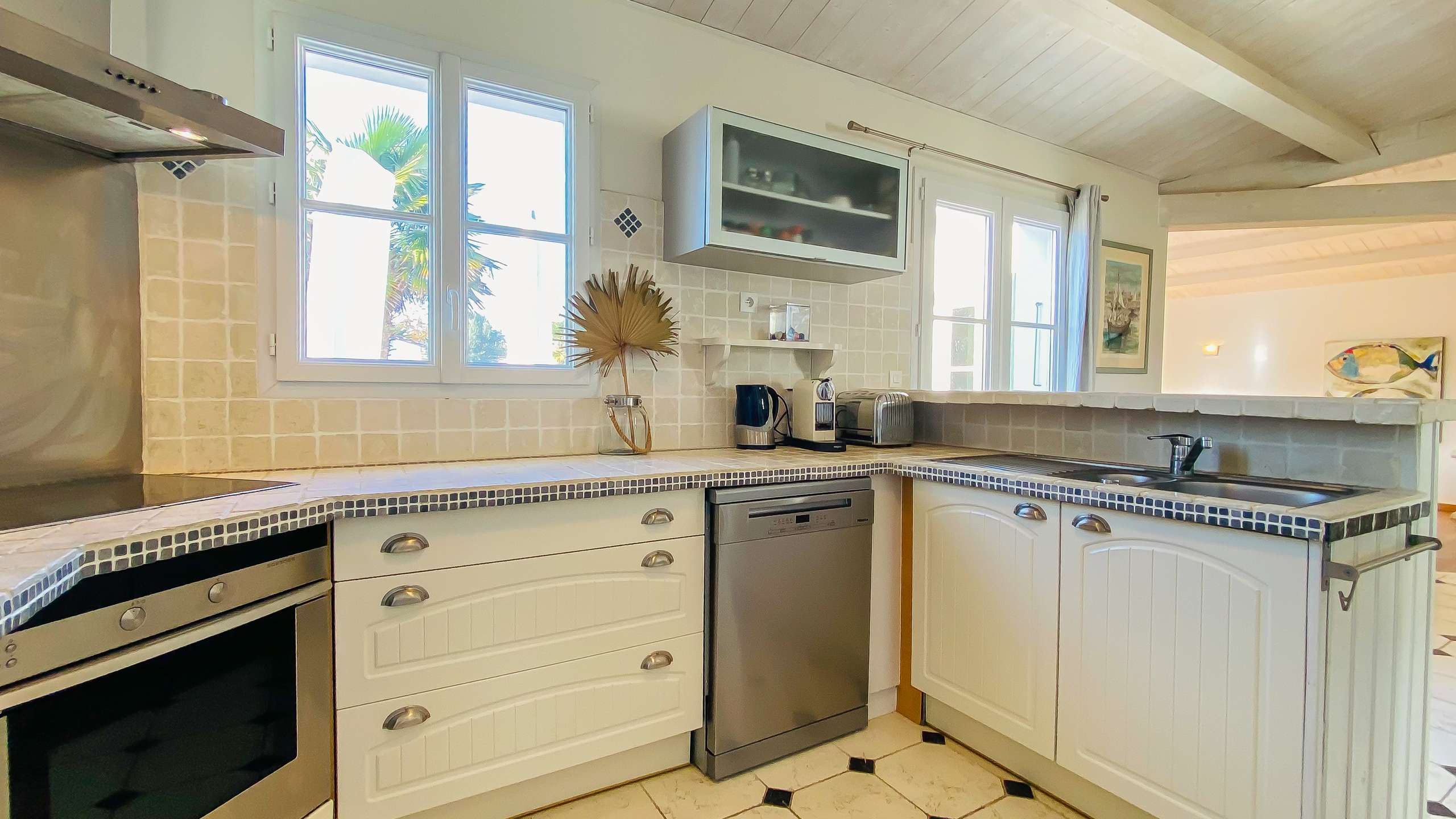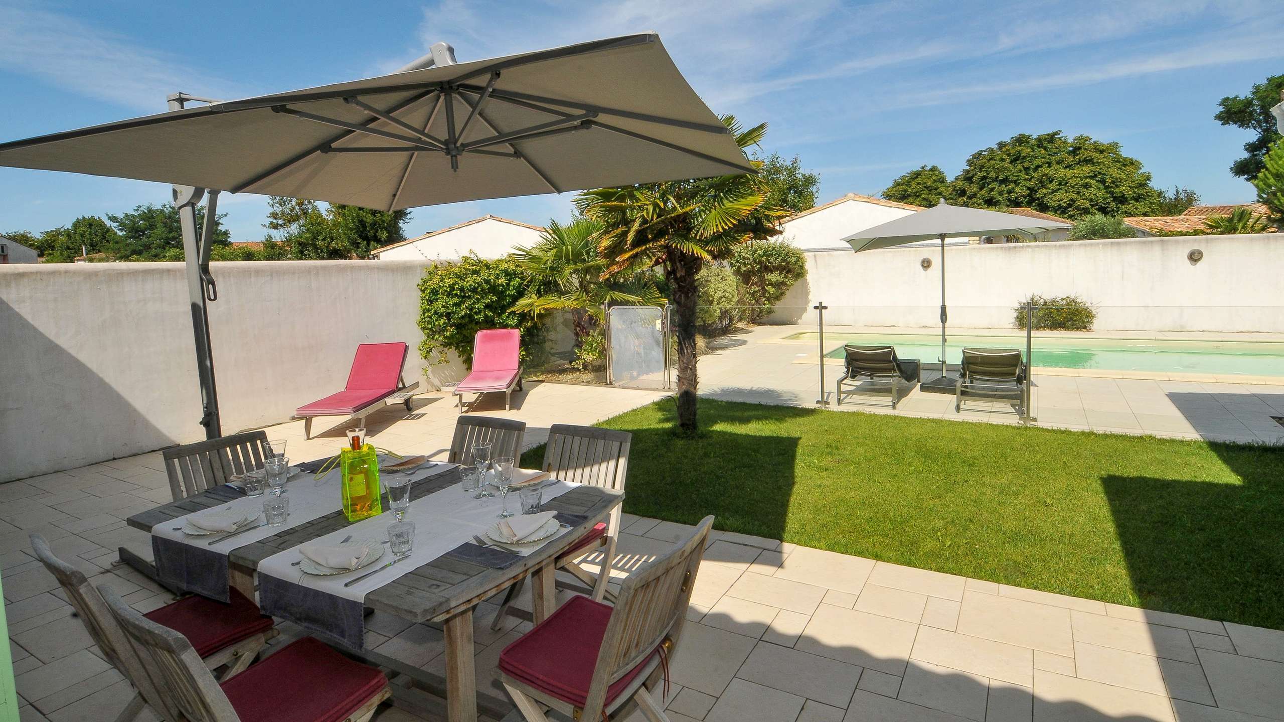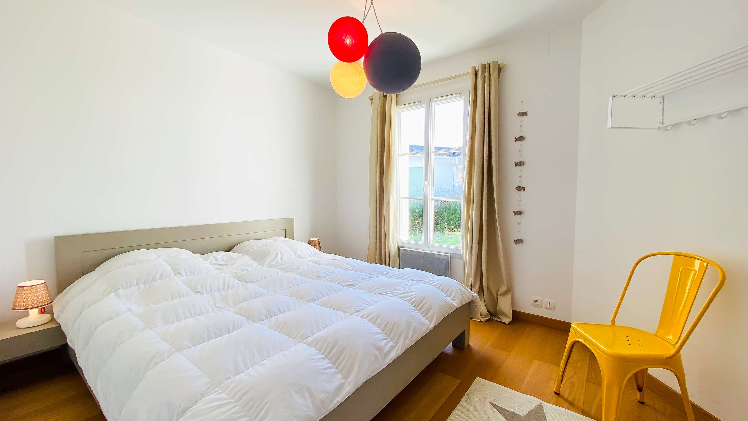 Magnificent villa with its 10x5m heated swimming pool and its parking, ideally located 600m from the Bois-Plage market. Spacious living room (TV and WIFI )with open kitchen. On the night side, 4 bedrooms, two of which have private shower rooms and a bathroom. A desk. Enclosed garden with terrace and courtyard, garden furniture, plancha and deckchairs. Parking and bike storage. END OF STAY CLEANING AND LINEN MANDATORY (Bed linen, hand towel, bath mat, tea towels)