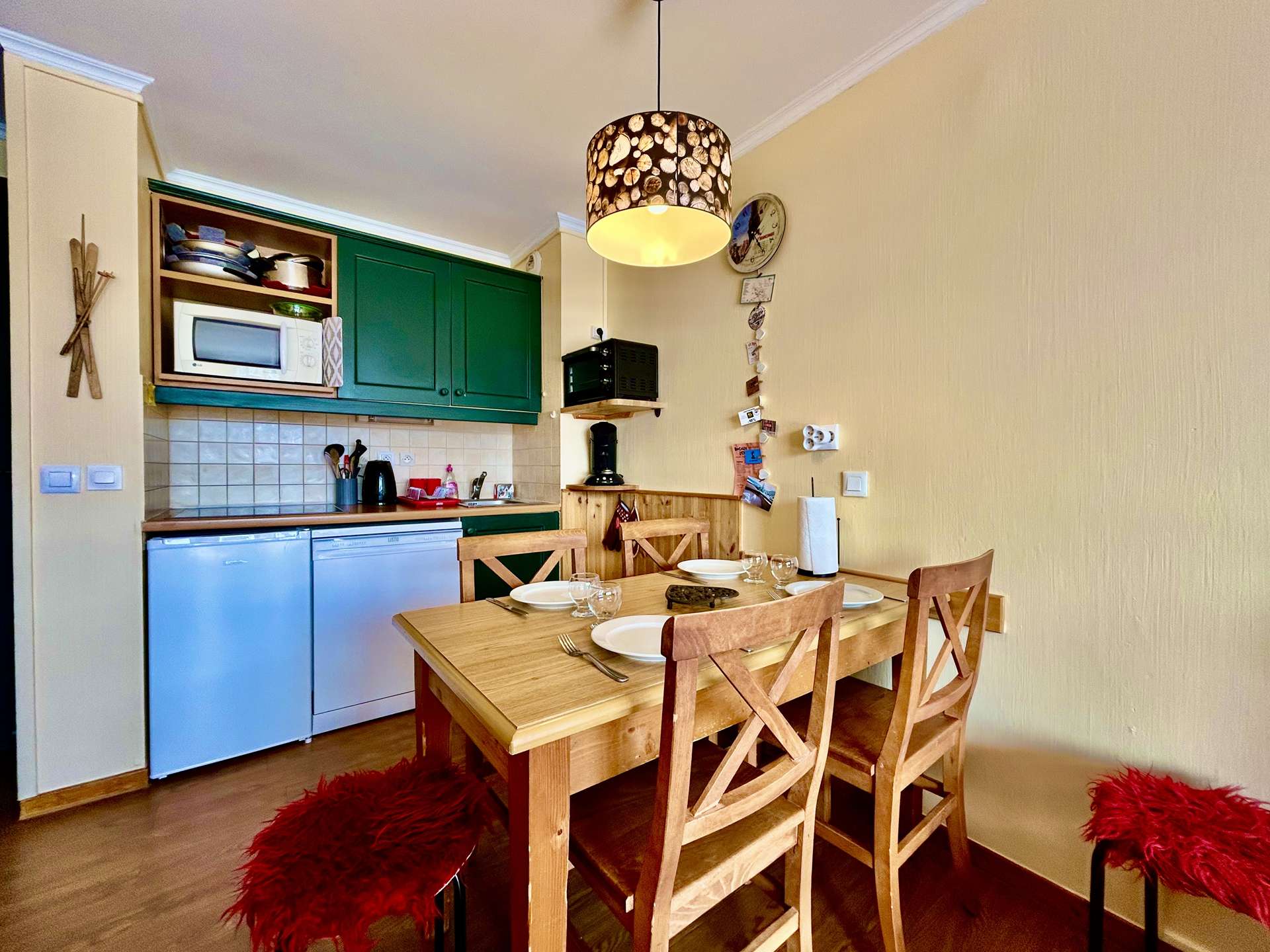 The advantages of this apartment in the mountains: This rental is ideally laid out to accommodate 4 people and benefits from a large terrace with a view of the shopping center square. It is ideally located to take advantage of the resort's leisure activities.