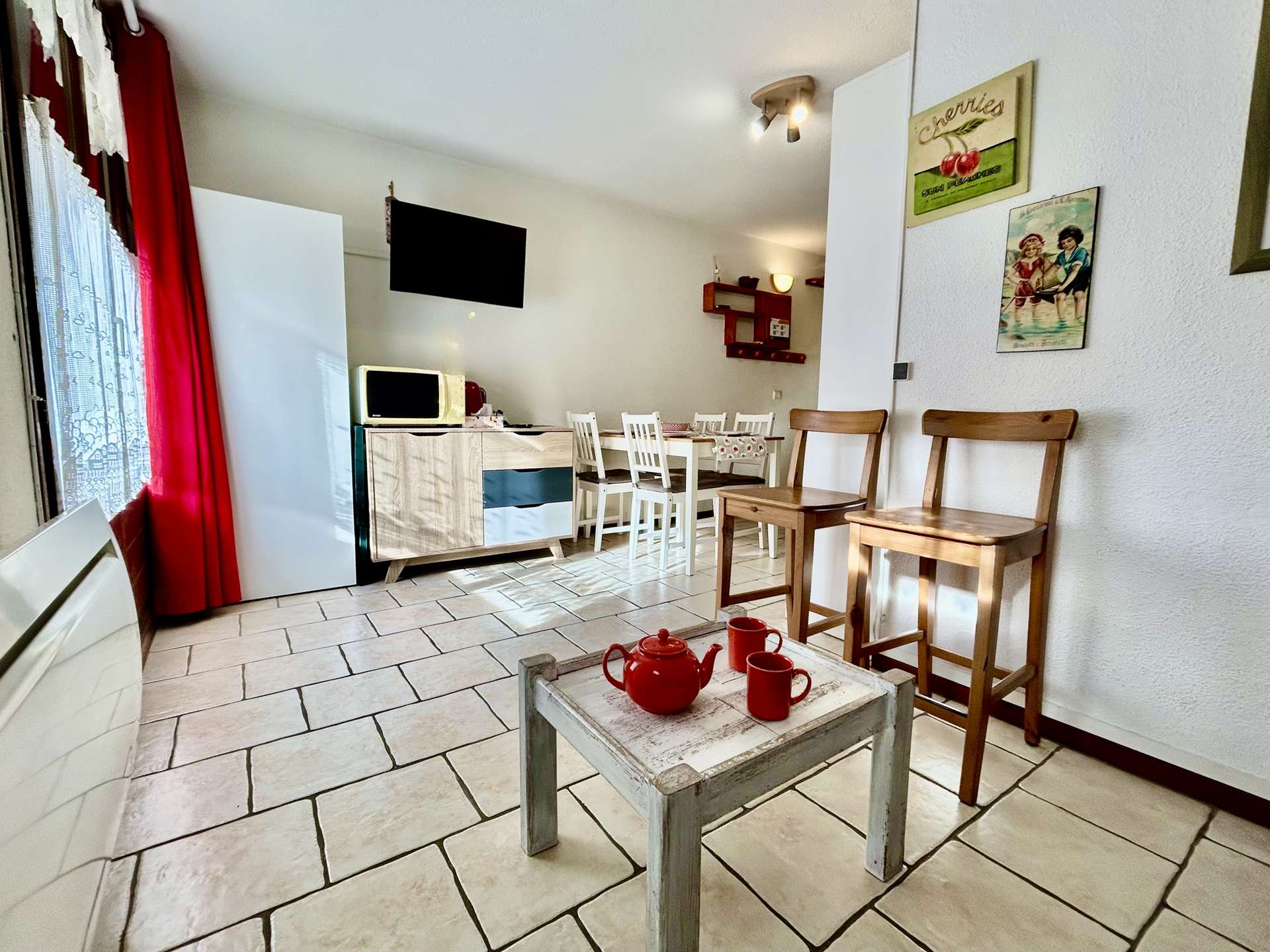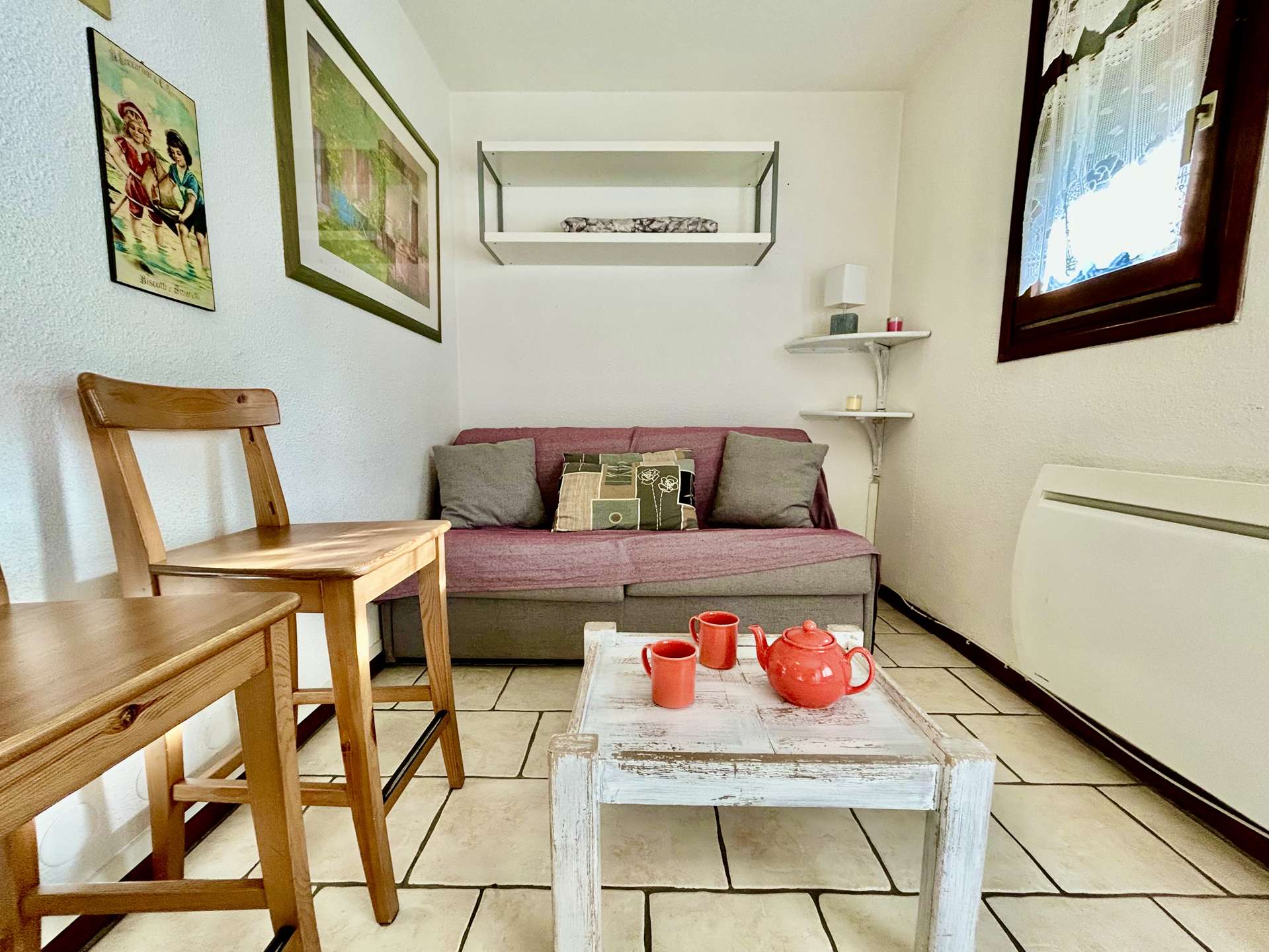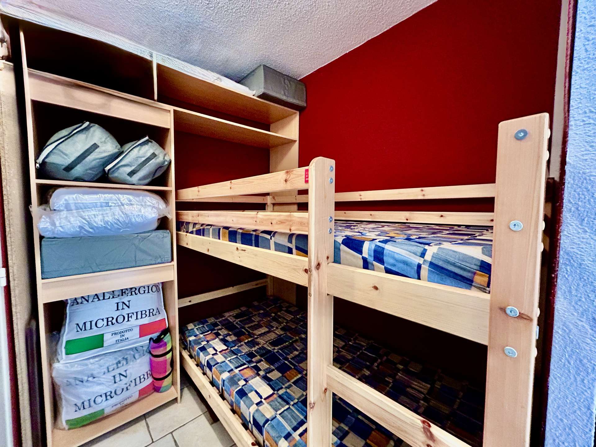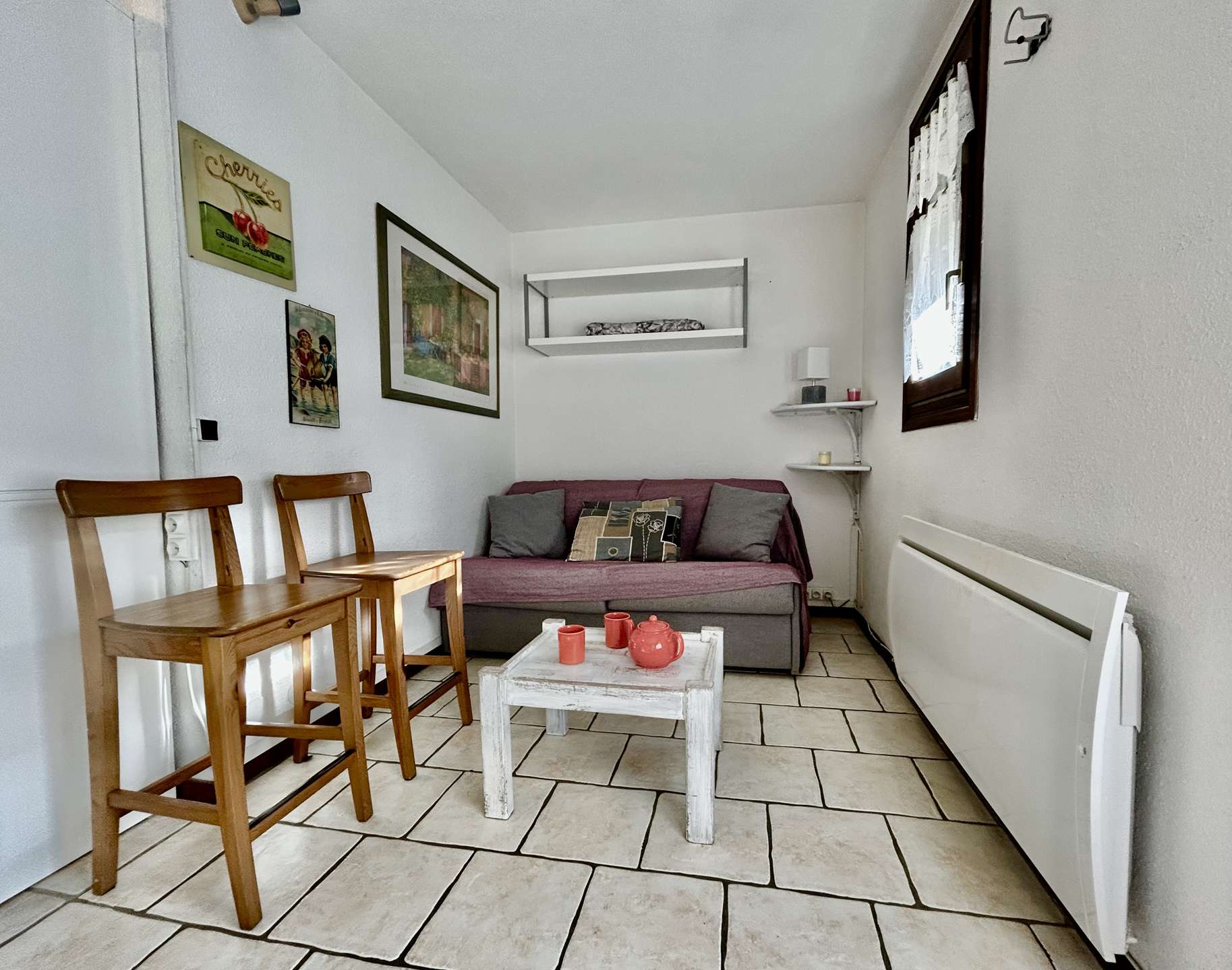 This charming holiday studio includes bunk beds installed in the alcove, a 140 BZ sofa bed in the living room with television, the kitchen area has everything you need, the bathroom and WC are independent.