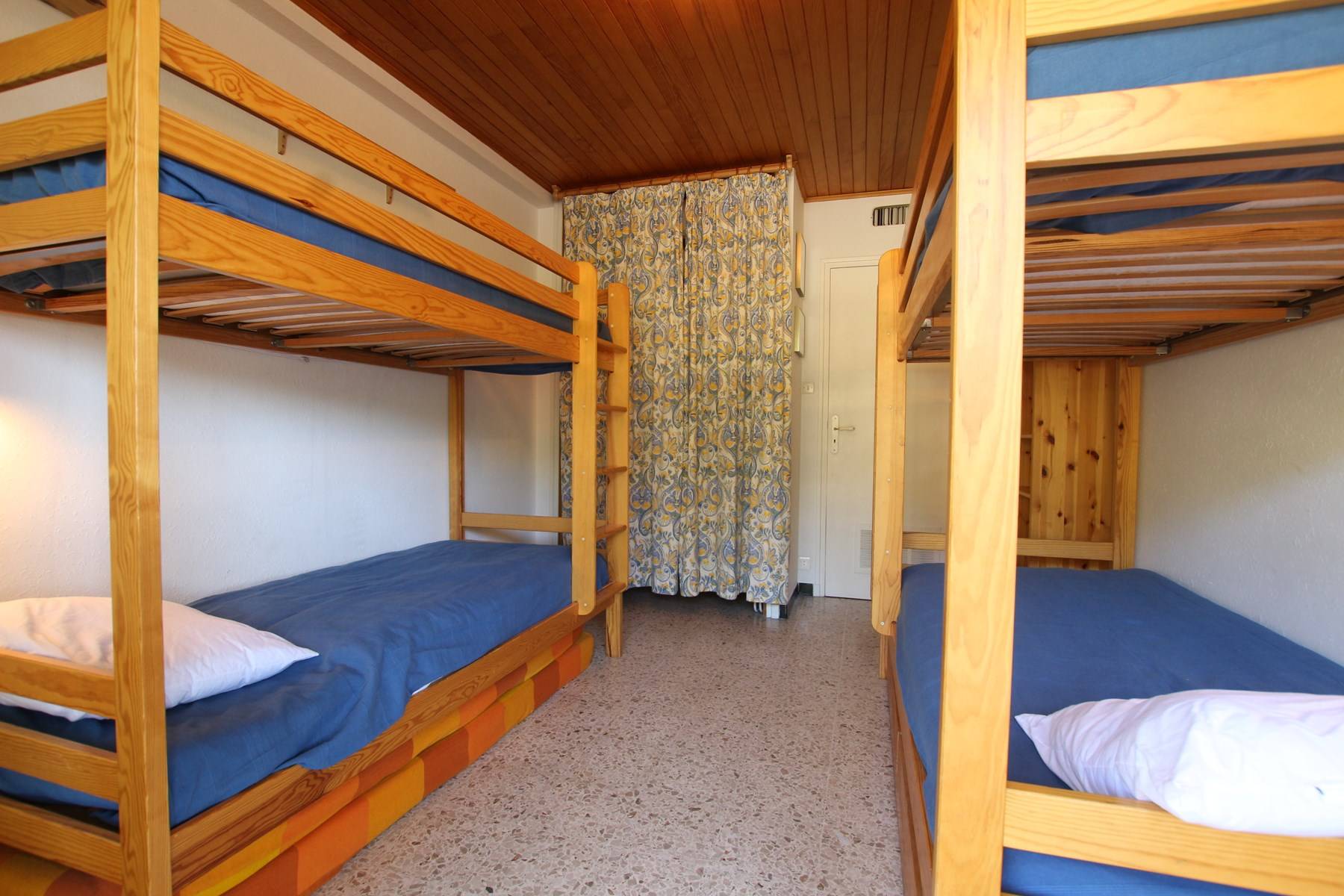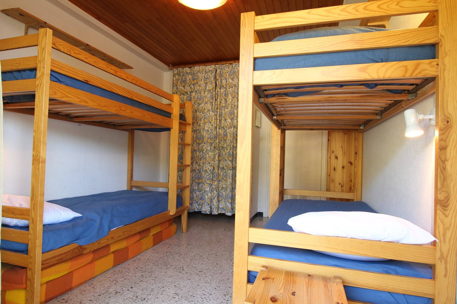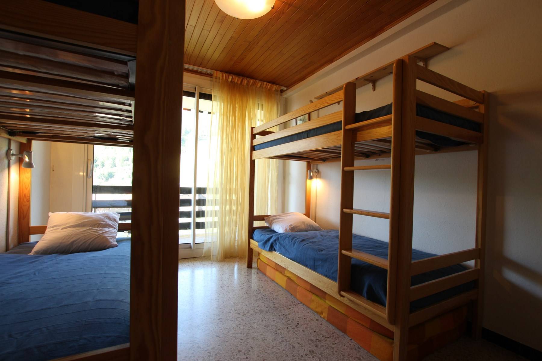 2-room apartment of 50 m² for 6 people with south-facing balcony. The apartment consists of: - a living room with a sofa bed and a television - a kitchen area with a refrigerator, a dishwasher, a washing machine, 4 hotplates, an oven, a microwave as well an electric coffee maker - a bedroom with 2x2 bunk beds. - A bathroom with bathtub and sink. - The toilet is independent