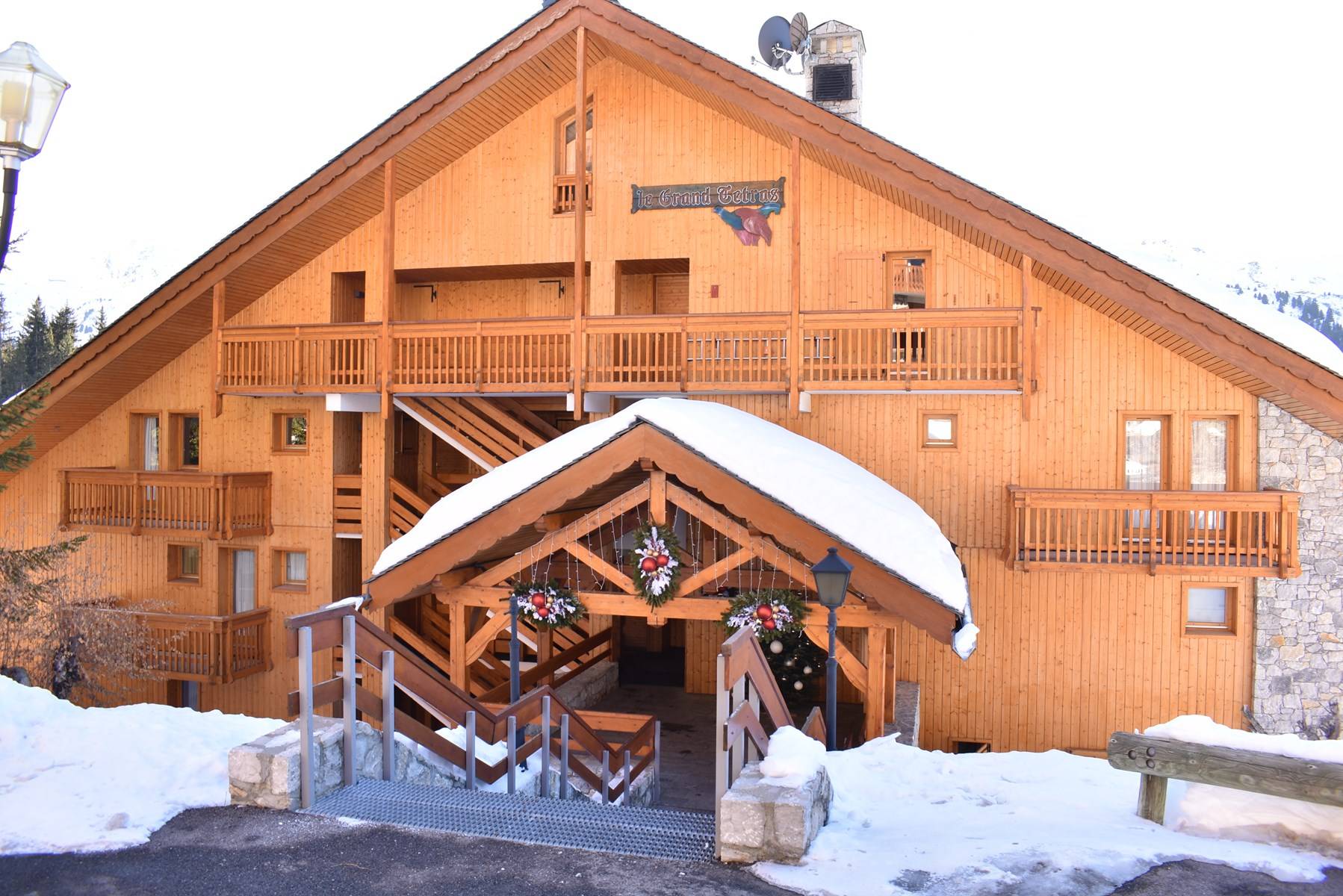 The Grand Tetras residence is located 100m from the slopes, 30m from the bus stop, 50m from a restaurant, 3km from shops and other restaurants and 6km from the center of the resort.
