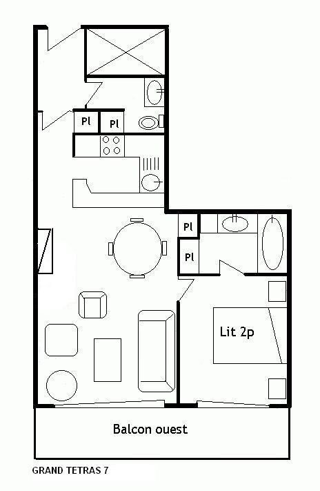 This apartment in the mountains located on the 2nd floor, with elevator, includes a living room with television, a dining area, 1 equipped kitchen open to the living room opening onto a west-facing balcony. It consists of a bedroom with 1 double bed (160) with west-facing balcony and an adjoining bathroom with washing machine and a separate toilet.