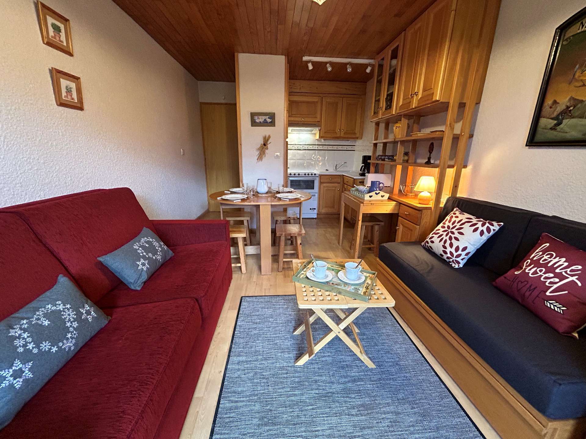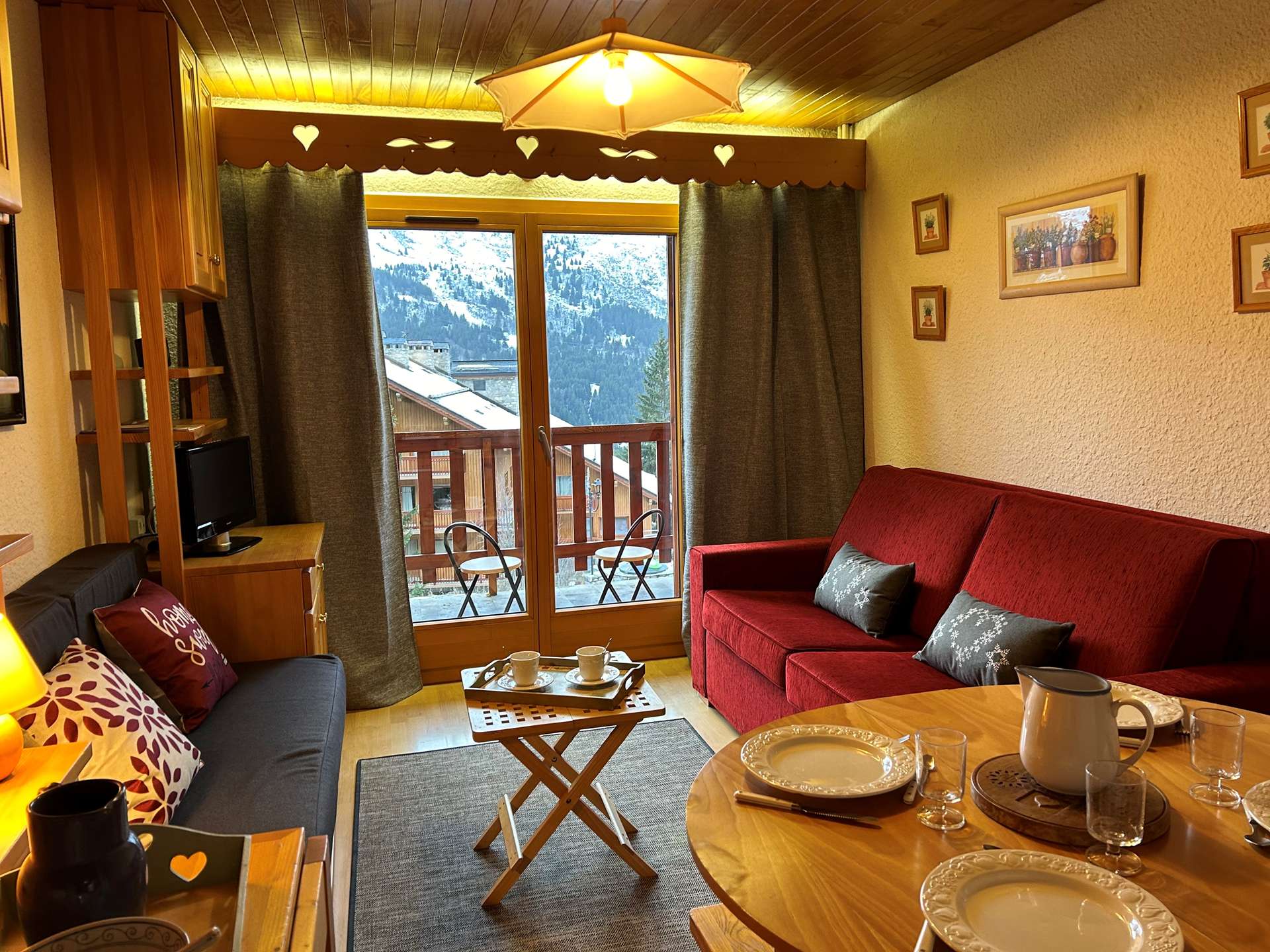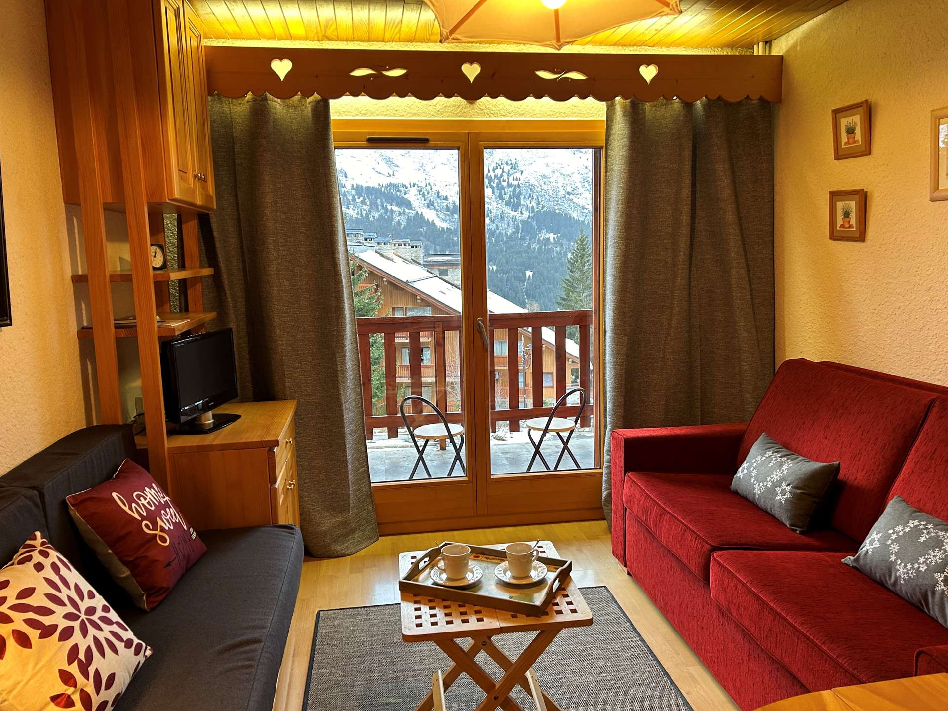 This apartment in the snow, located on the 1st floor of the residence, with lift, includes 1 kitchen open to the living room with a dining area, 1 sofa bed 160, 1 television, 1 bathroom, 1 separate toilet and 1 bedroom with 2 single beds.