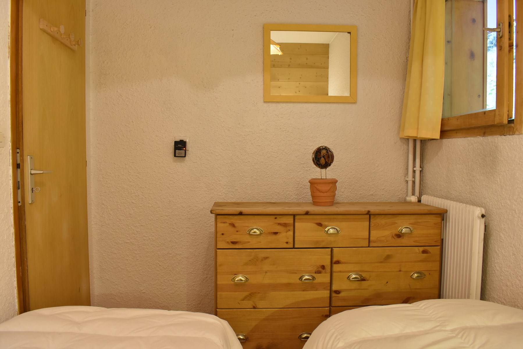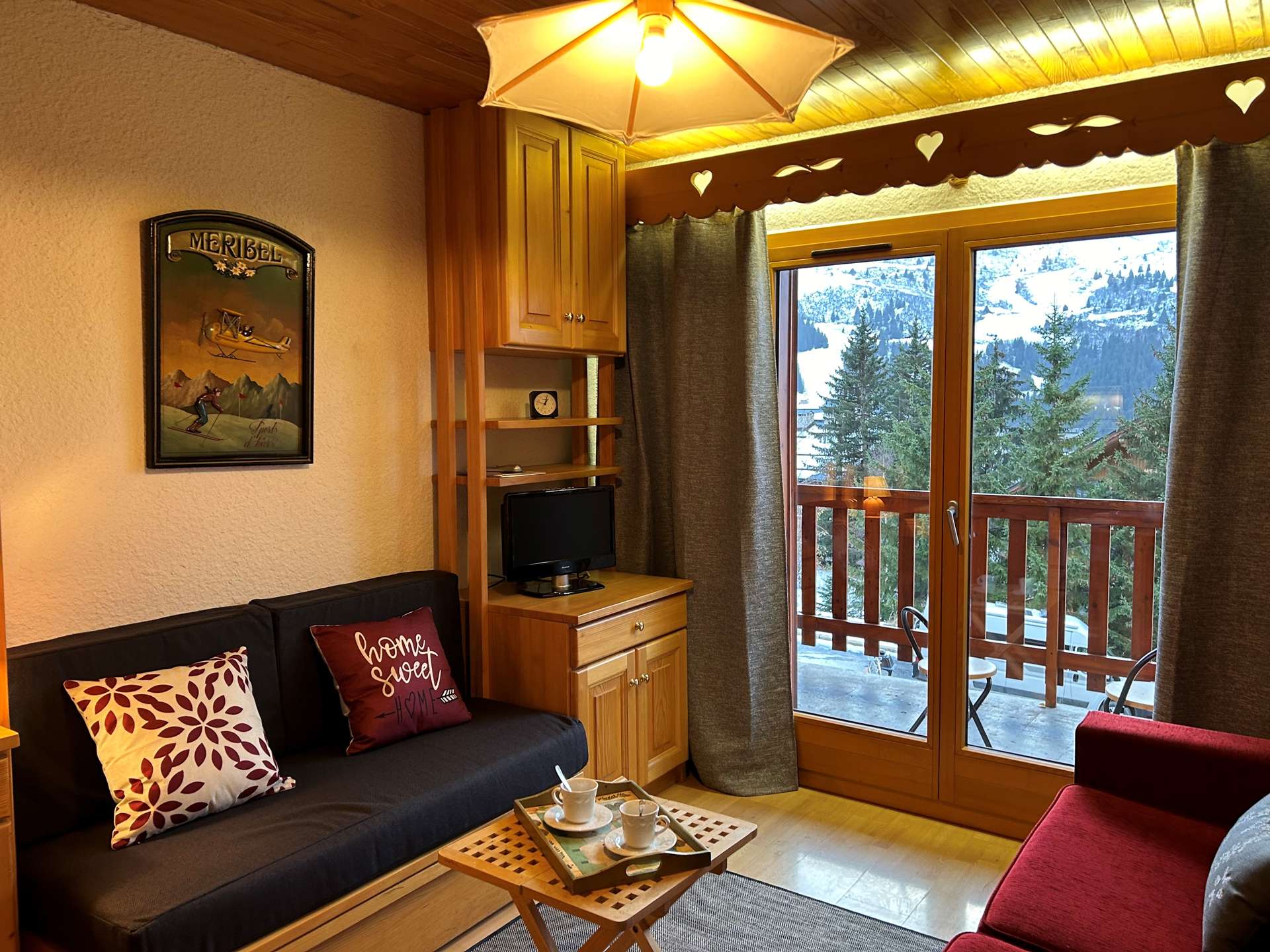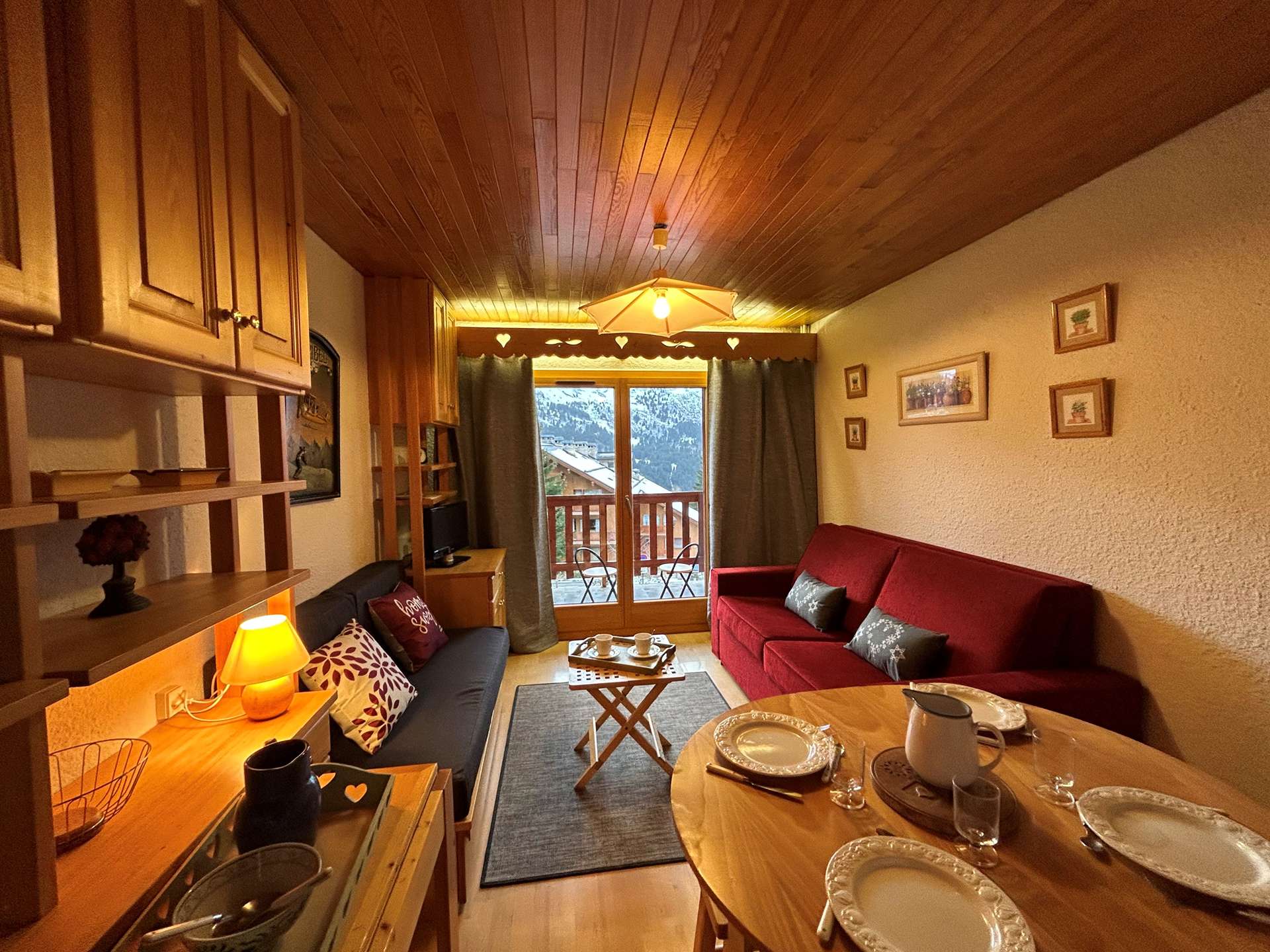 This apartment in the snow, located on the 1st floor of the residence, with lift, includes 1 kitchen open to the living room with a dining area, 1 sofa bed 160, 1 television, 1 bathroom, 1 separate toilet and 1 bedroom with 2 single beds.