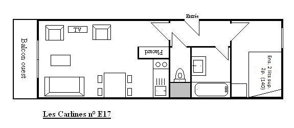 The "Les Carlines" residence is located 20m from the shops, restaurants and the shuttle stop, 150m from the slopes and 3 km from the center of the resort.