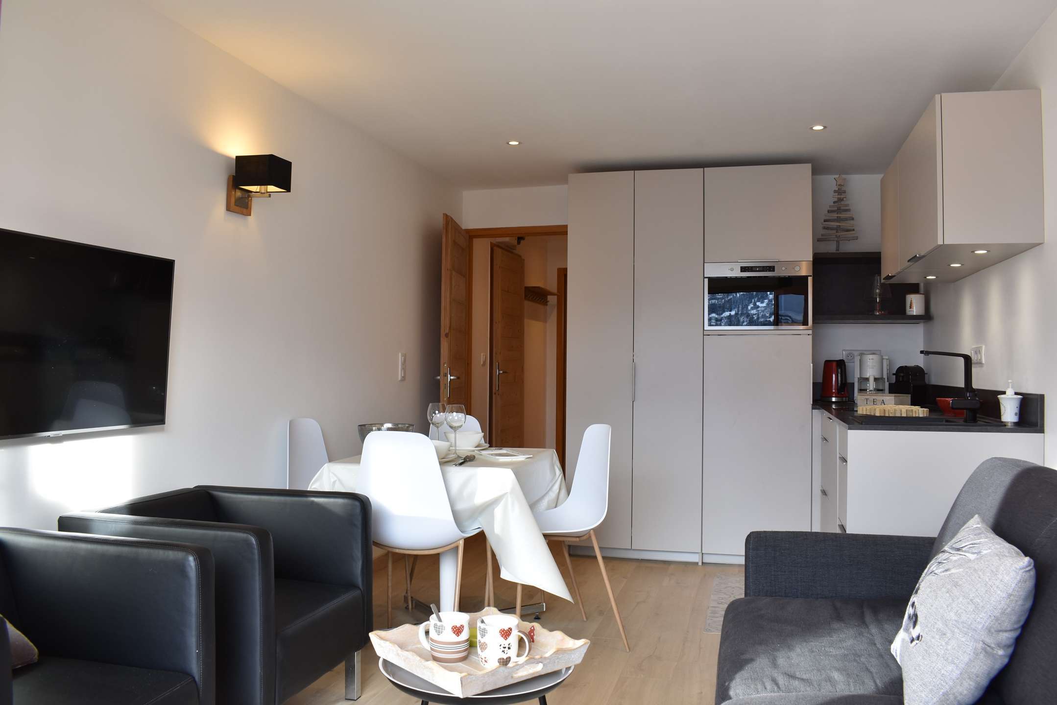 The advantages of this apartment in the snow: The west balcony offers a lovely view of the mountains. The bakery, butcher and ski shops are located just below the residence. The shuttle stop is 20m away. You can reach the center of the station for free and without having to use your vehicle.