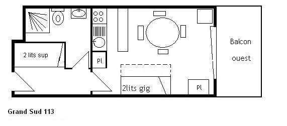 Méribel (73) - Le Plateau - Résidence le Grand Sud Studio Apartment - approximately 19m2 - up to 4 people The residence "Le Grand Sud" is located 150m from the slopes, 100m from the shuttle stop, shops and restaurants and 3 km from the center of the resort. This studio located on the 1st floor includes a kitchen open to the living room with a television, a set of pull-out pull-out beds opening onto a west-facing balcony and a bathroom with toilet. The advantages of this apartment: The proximity to the slopes, shops and restaurants and the free shuttle located 100m away which will take you to the center of the resort in a few minutes. You will have a ski locker. Cleaning included in the rental - Linen not included Pets not accepted