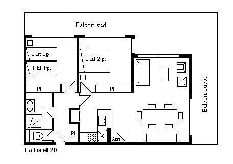 The advantages of this ski rental: a ski locker on the upper ground floor, a living room with balcony and south and west views and a small collective parking lot at the foot of the building.