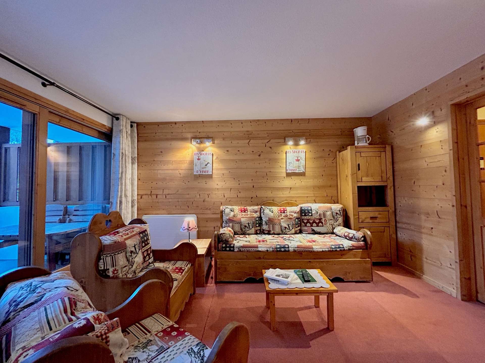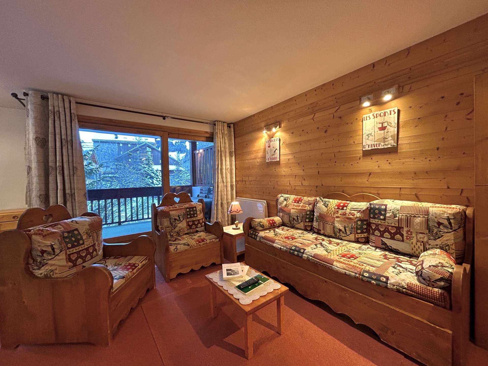 This apartment in the mountains located on the sixth floor, with lift (B), includes an equipped kitchen open to a living room (south balcony) with a set of two pull-out pull-out beds and television, a bedroom with a double bed (140), another bedroom with two single beds, a bathroom, a separate toilet and a separate shower cubicle. You have a ski locker and a parking space in the garage.